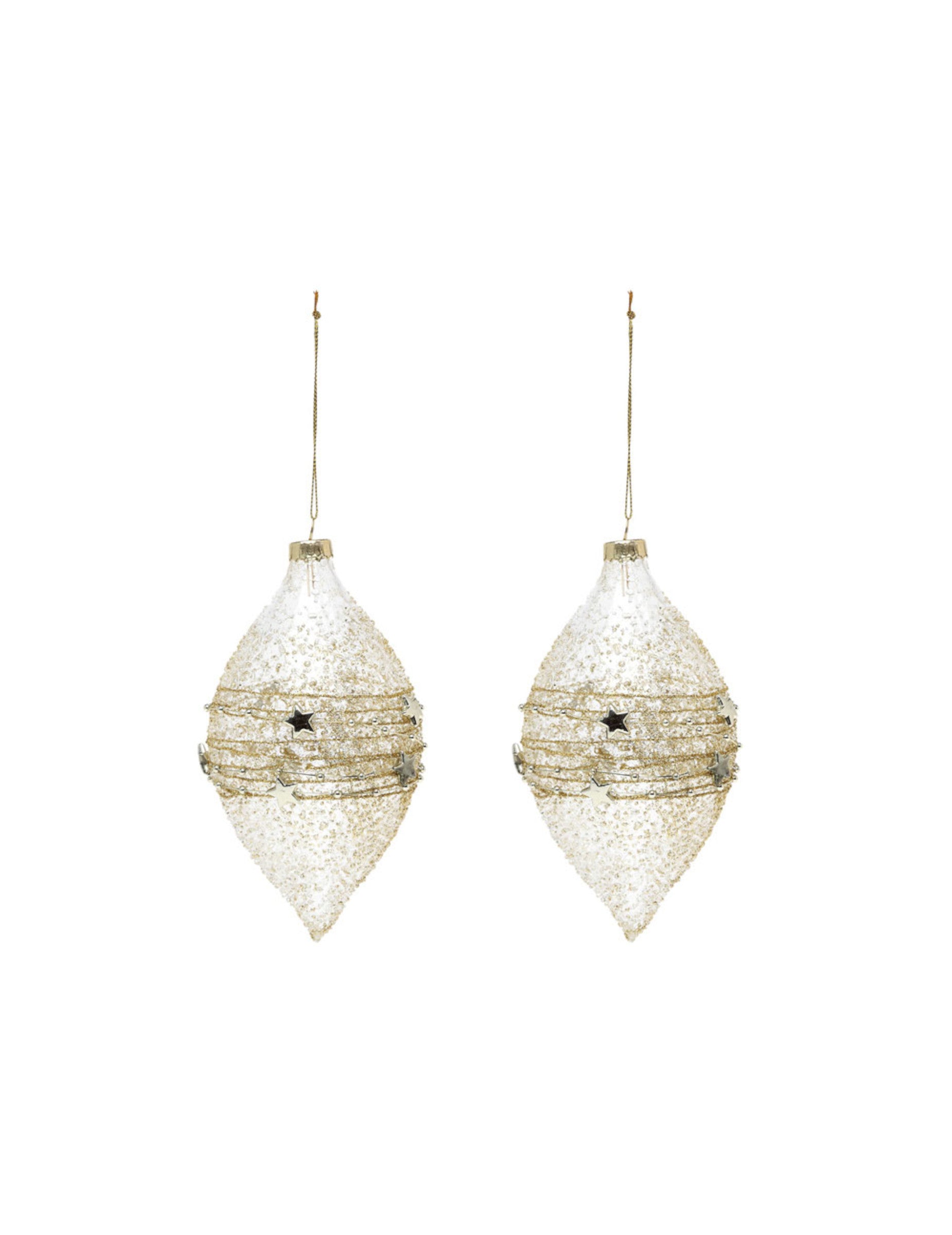 2 zlaté skleněné kapkovité koule 15 cm