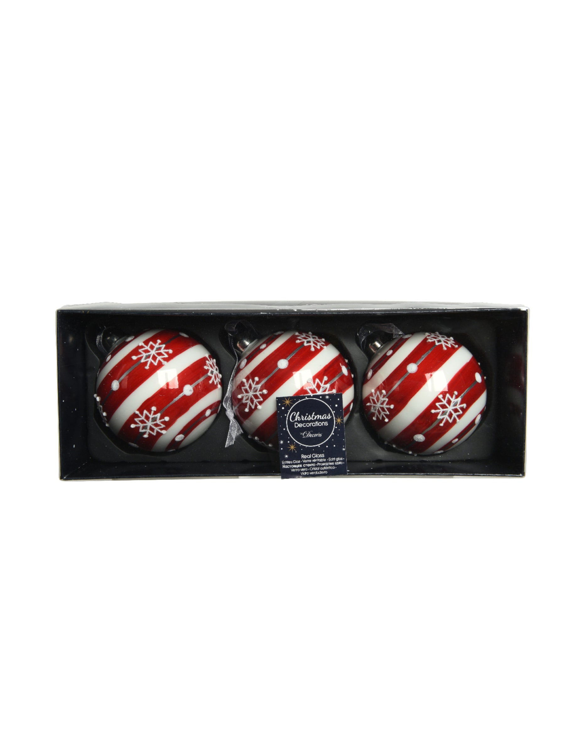 S průměrem 8 cm, Zdobí je dvoubarevné červenobílé pruhy a rafinované vzory sněhových vloček. Rozhodněte se pro tyto tradiční plesy za účelem vylepšení vaší dekorace během vánoční večírky.