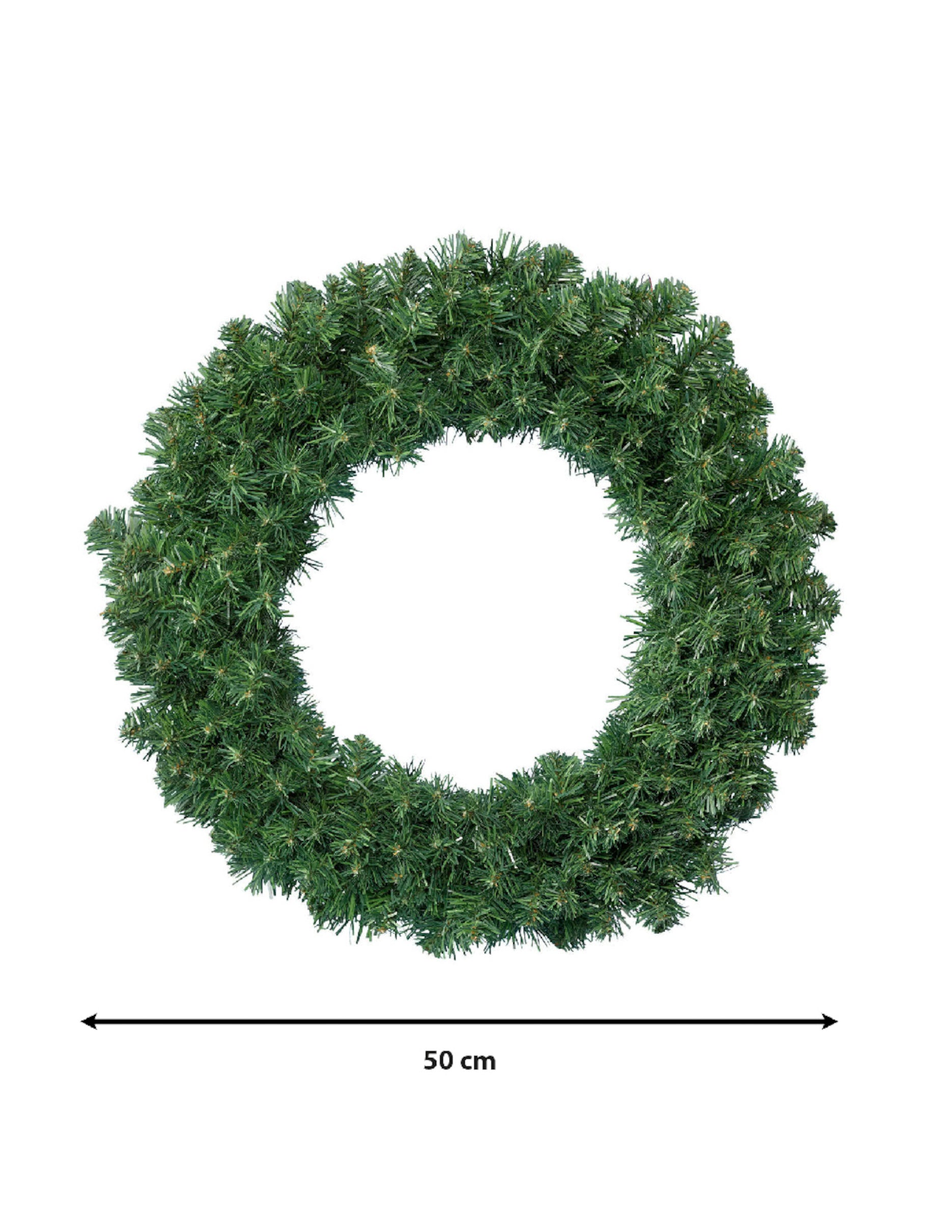 S velkorysým průměrem 50 cm, toto vánoční věnec se skládá z realistických umělých větví jedle. Je to ideální doplněk, který vnese kouzlo do vašich vchodových dveří nebo vnitřních stěn. Na oslavu vánoční večírky s elegancí, tohle jedlový věnec přizpůsobí se všem stylům slavnostní výzdoby.