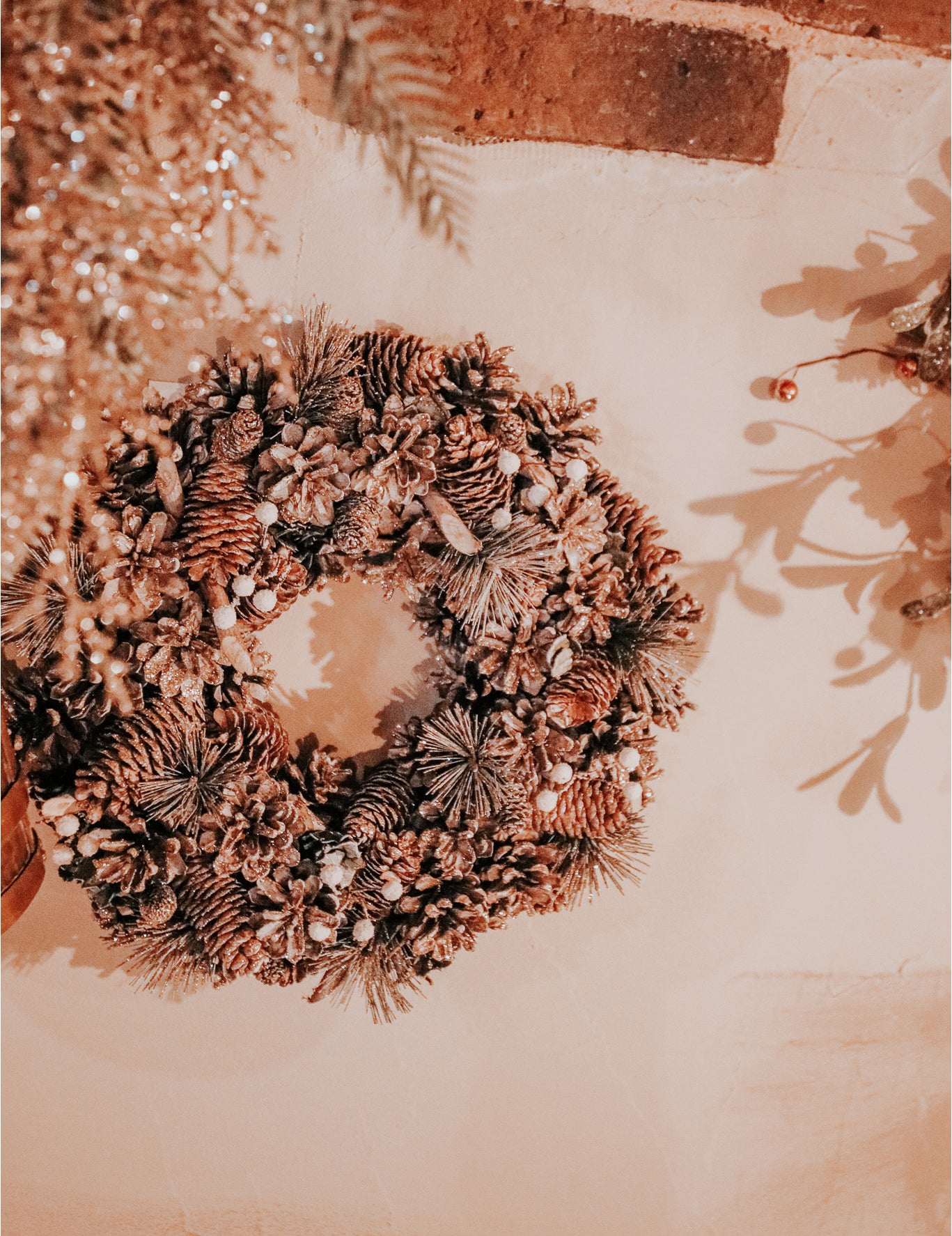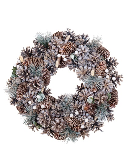 S průměrem cca 35 cm, toto vánoční věnec vnese do vašeho interiéru punc autenticity. Skládá se ze sestavy přírodní dekorace včetně šišek různých tvarů, jedlových větví, dřeva a malých bílých mramorů. Je to perfektní doplněk pro vytvoření magické a rostlinné atmosféry během vašeho pobytu oslavy konce roku.
