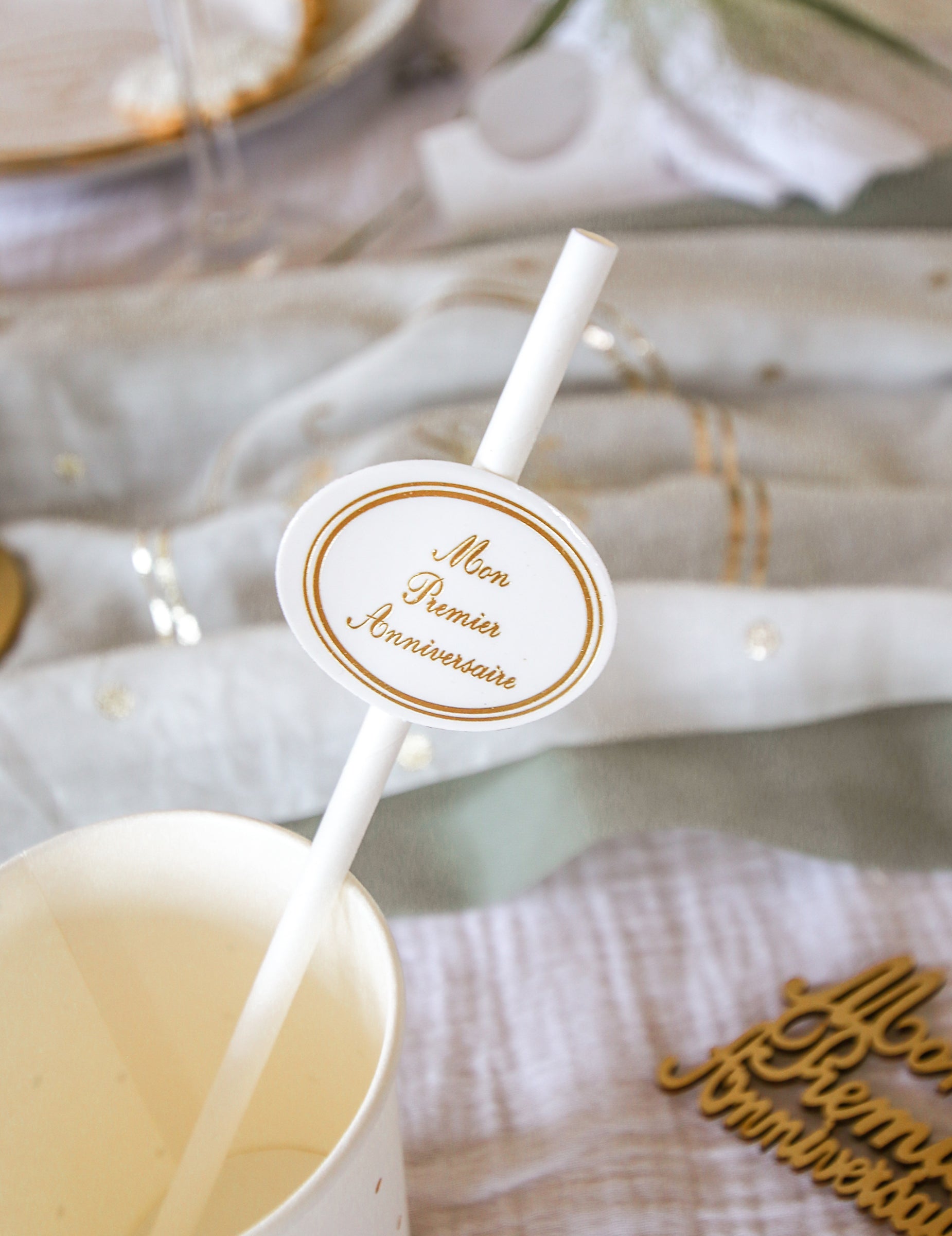 Přineste slavnostní poznámku na vaši recepci s touto sadou 12 kusů brčka bílá 19 cm. Každý exemplář má elegantní kartonový medailon označený nápisem „ moje první narozeniny » ve zlacení. Tyto doplňky jsou ideální pro pečlivé zdobení stolu 1. narozeniny vašeho dítěte.