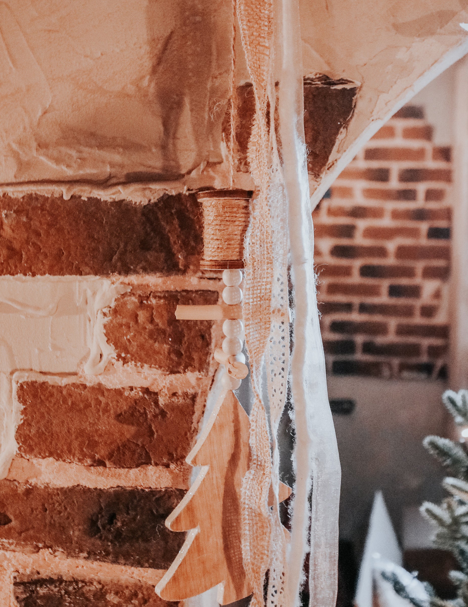 S délkou 90 cm přibližně toto pozastavení je autentickým dekorativním doplňkem. Sdružuje a jedle a různé dřevěné ozdoby, zdobené doteky krajky a jutových stuh. Ideální pro nastolení ducha Skandinávská chata doma bude tento kousek okouzlujícím doplňkem vaší narozeninové oslavy Vánoce .