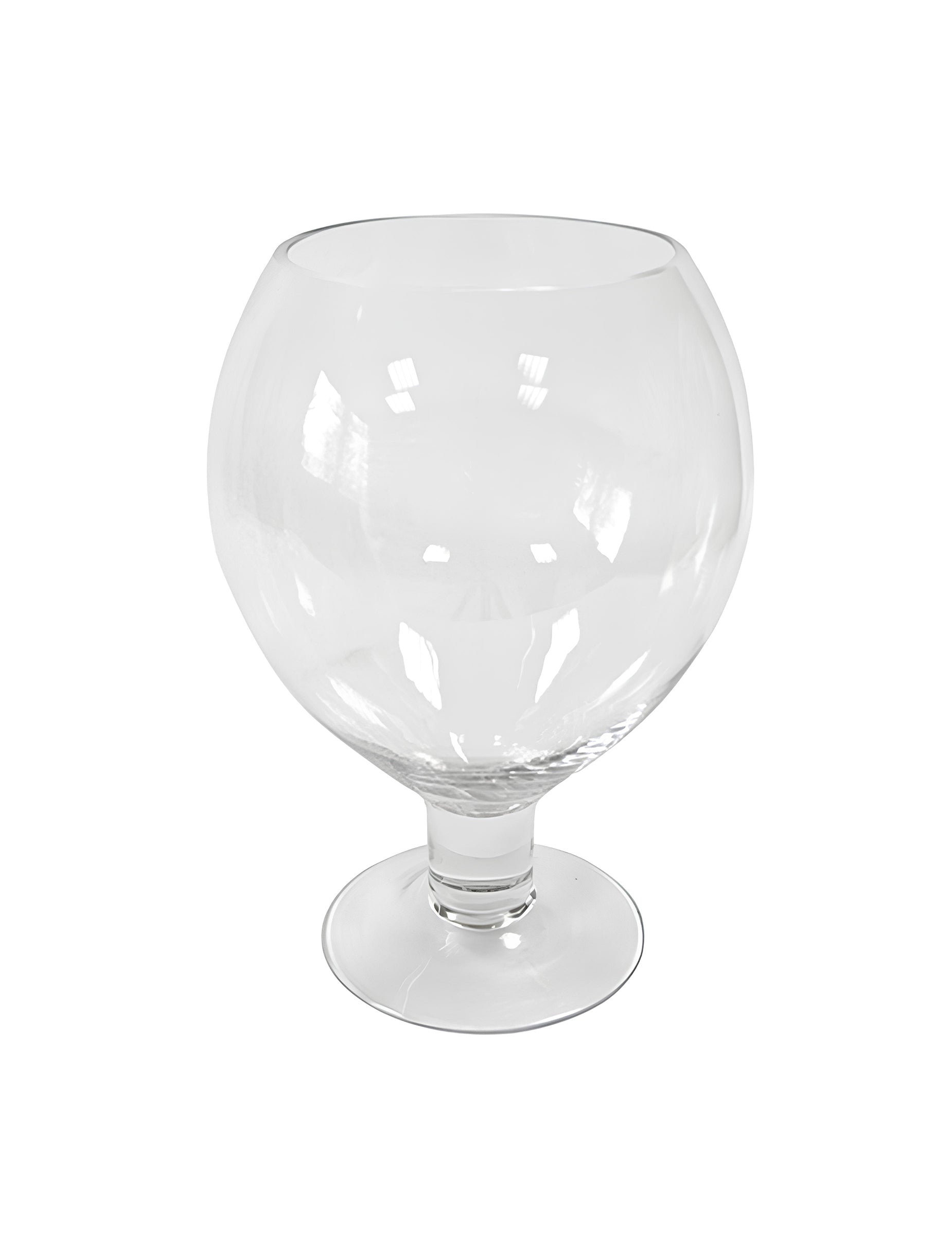 S rozměrem 25 x 18 cm, toto váza z průhledného skla má balónovou siluetu elegantně umístěnou na noze.