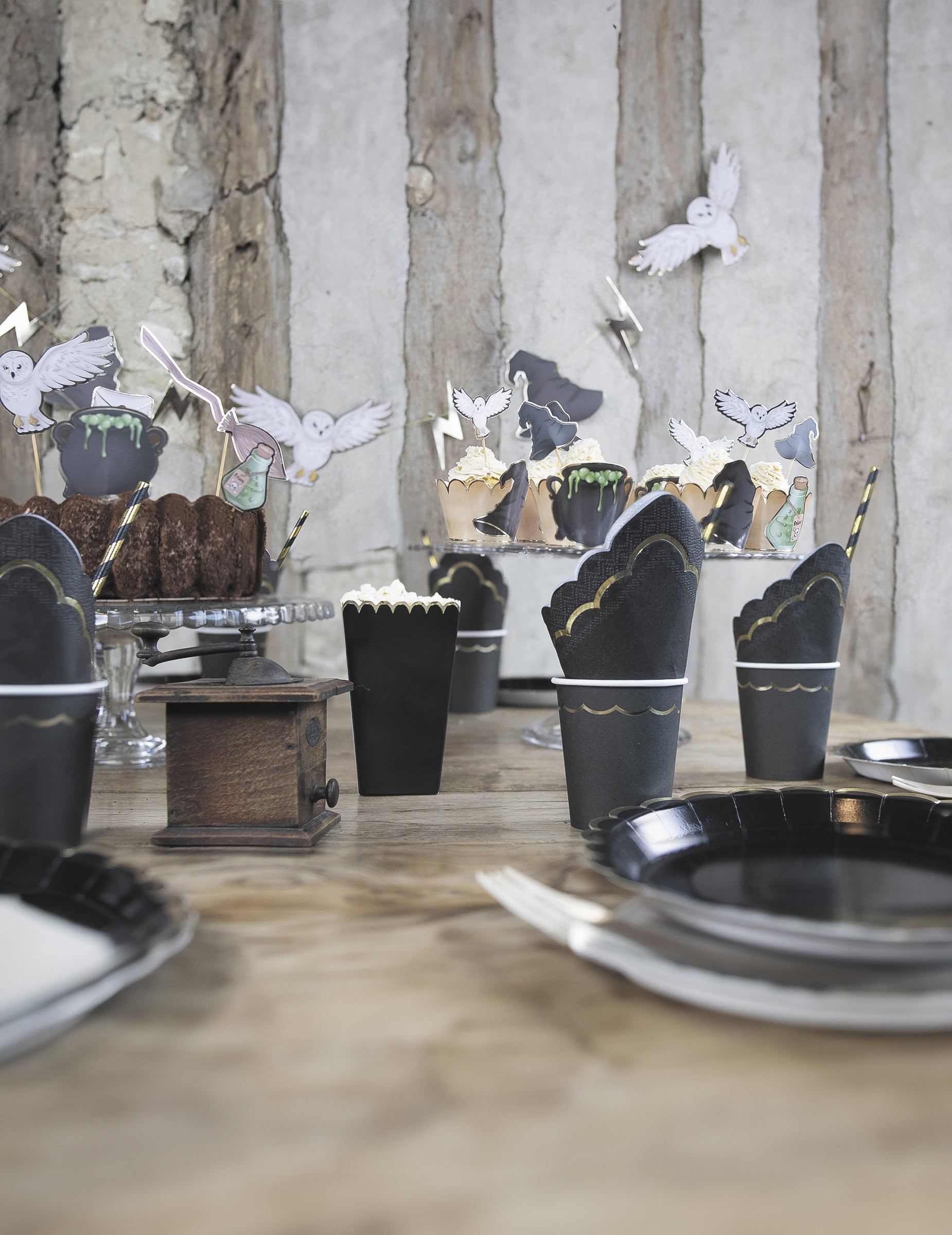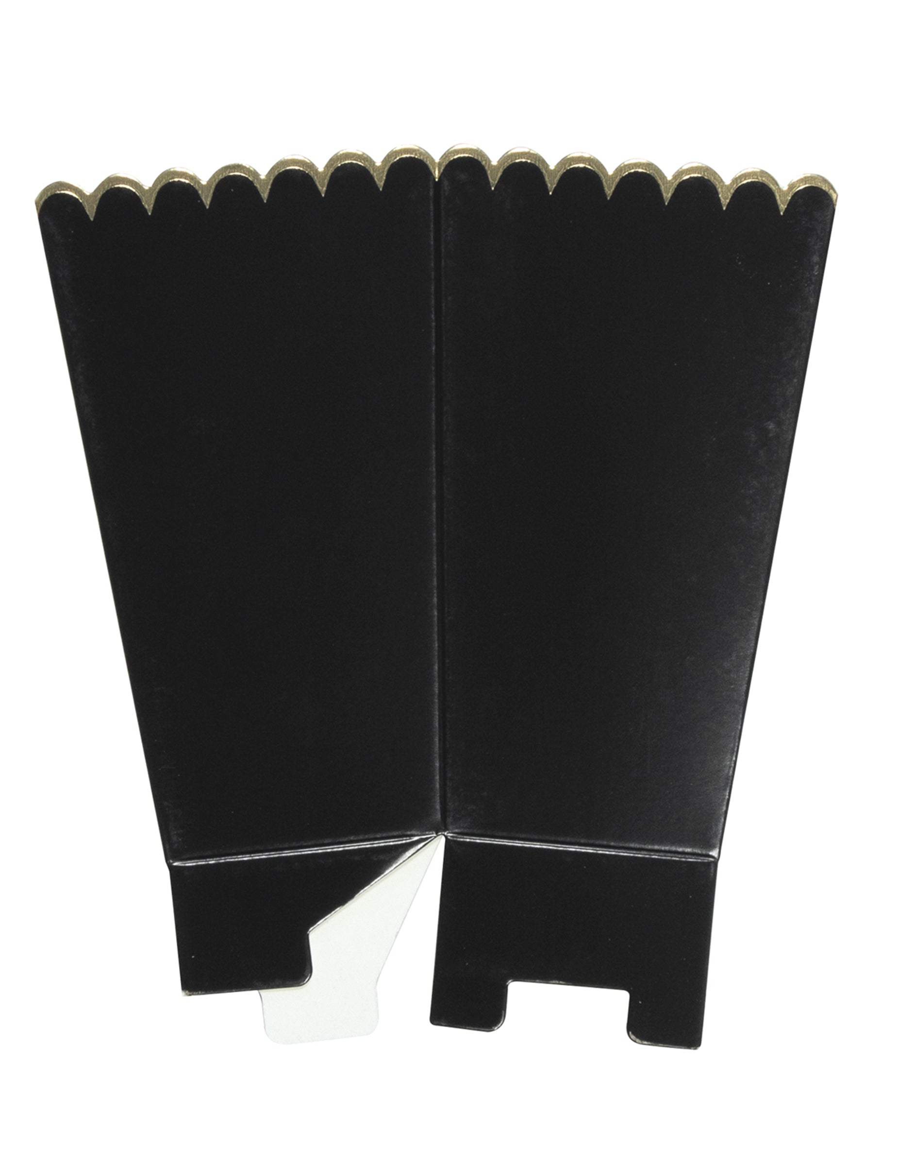 Tato šarže obsahuje 8 krabičky na popcorn vyrobeno z kartonu o velikosti 12,5 x 7 cm. Jejich černá barva je zvýrazněna vroubkovanými zlatými lemy. Tyto nádoby jsou ideální pro uložení pamlsků nebo dárků během a narozeninová svačina nebo oslavit Halloween.