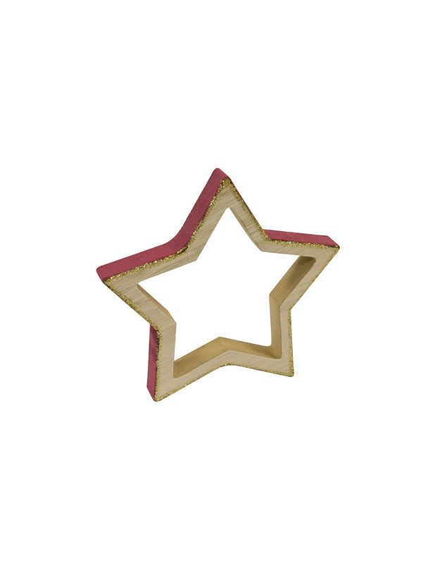 Hvězdná dekorace ze dřeva a vínového sametu se třpytkami 12 cm pro elegantní Vánoce