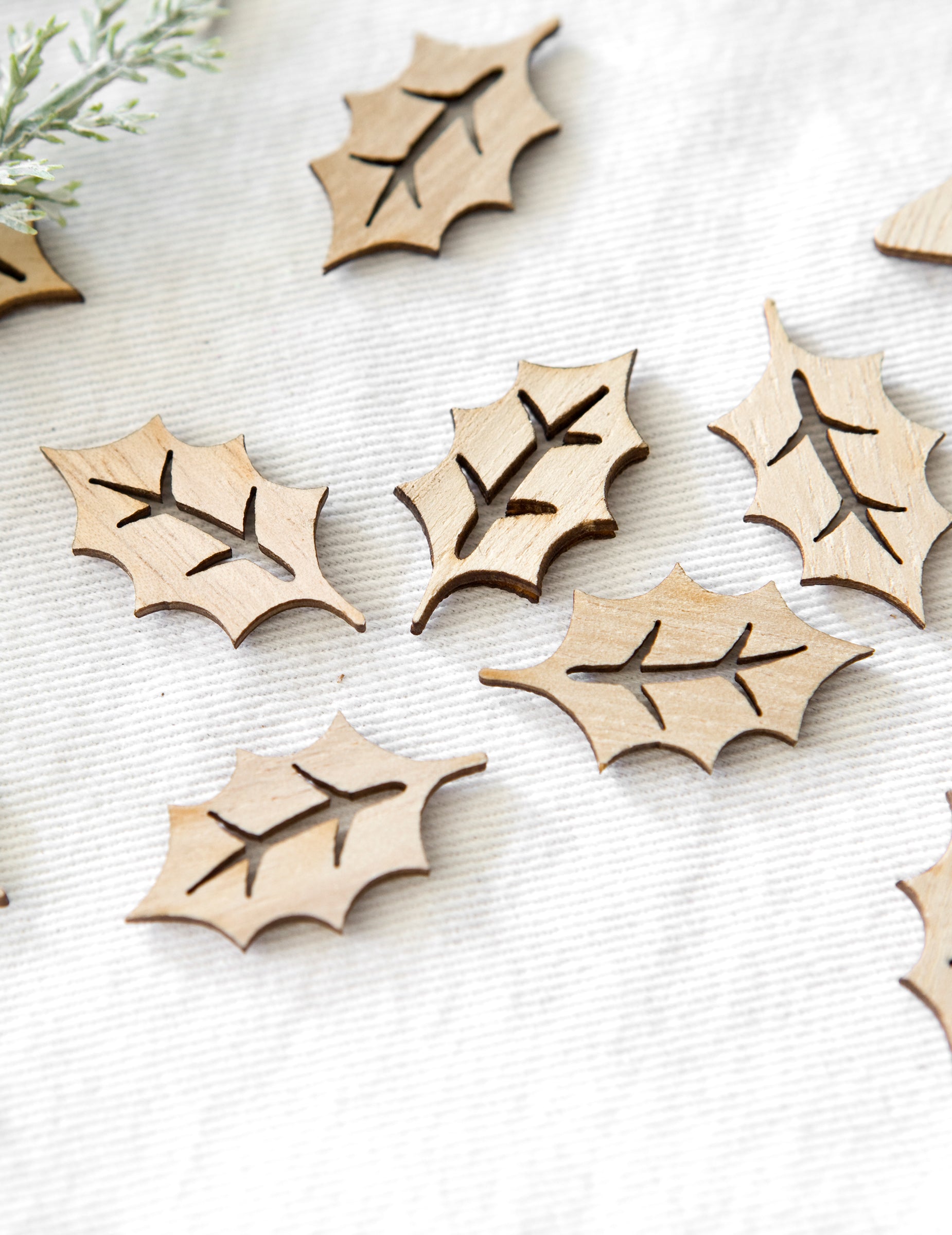 Apportez une note authentique à votre décoration de table avec ce lot de 20 confettis en bois. Chaque pièce, mesurant environ 1,8 x 3 cm, est finement découpée en forme de feuilles de houx ajourées. Ces éléments décoratifs sont parfaits pour créer une ambiance naturelle et festive, rappelant l'esprit traditionnel de noël.