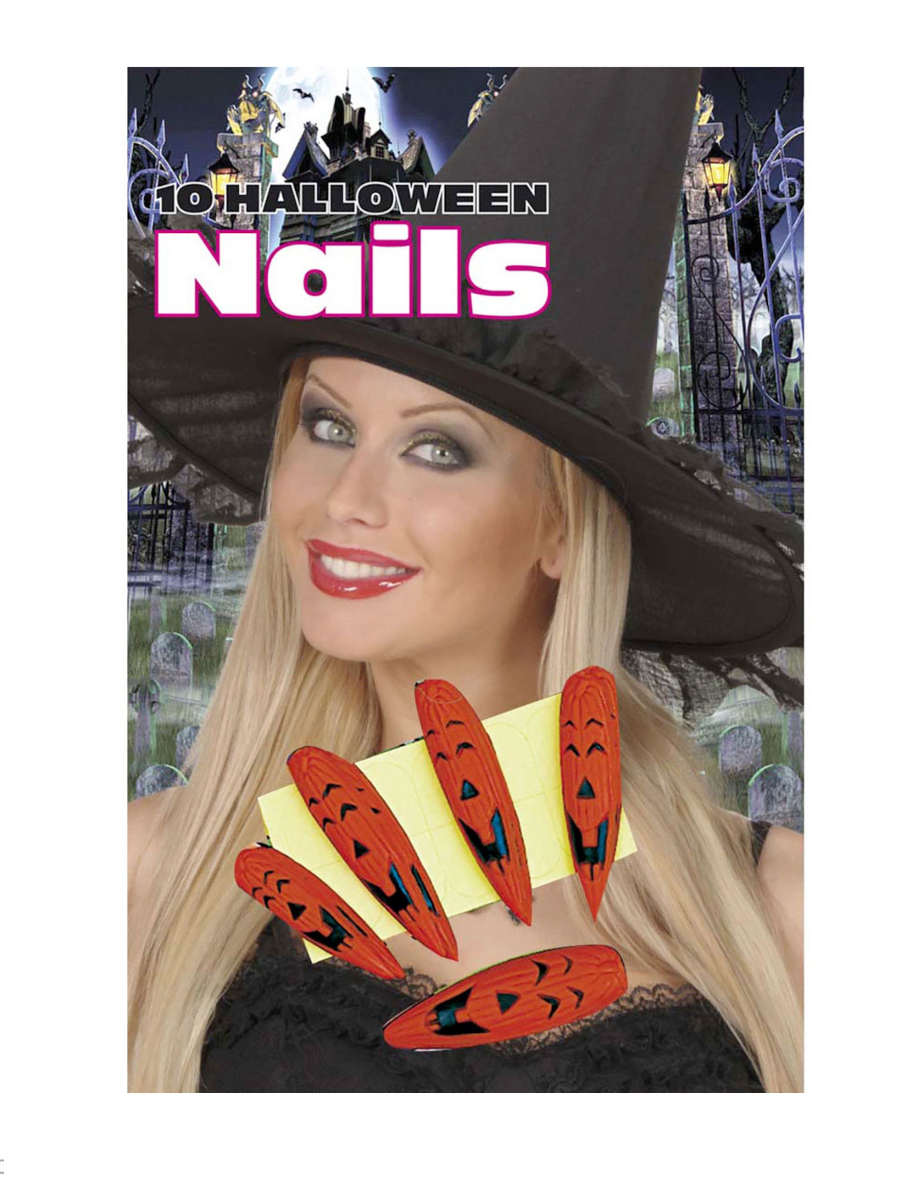 Tato sada falešných nehtů s dýněmi je určena pro dospělé. Obsahuje 10 falešných nehtů a 10 oboustranných lepicích pásek. Nehty jsou nalakované oranžovou a černou barvou a mají tvar dýně, ideální na večírek s halloweenskou tématikou! Lepicí pásky vám umožní snadno připevnit falešné nehty a zajistí jejich pevné držení. Tento nezbytný doplněk na Halloween skvěle doplní váš kostým!
