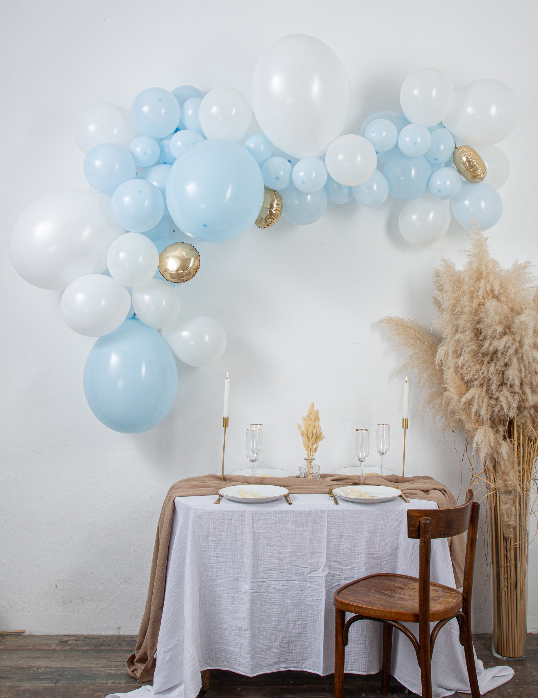 Vylepšete svou akci tímto modrá a bílá sada balónového oblouku složený z 57 dílků. Ideální pro a dekorace pro miminko nebo a narozeniny, tato kompletní sada vám umožní vytvořit slavnostní a elegantní strukturu.