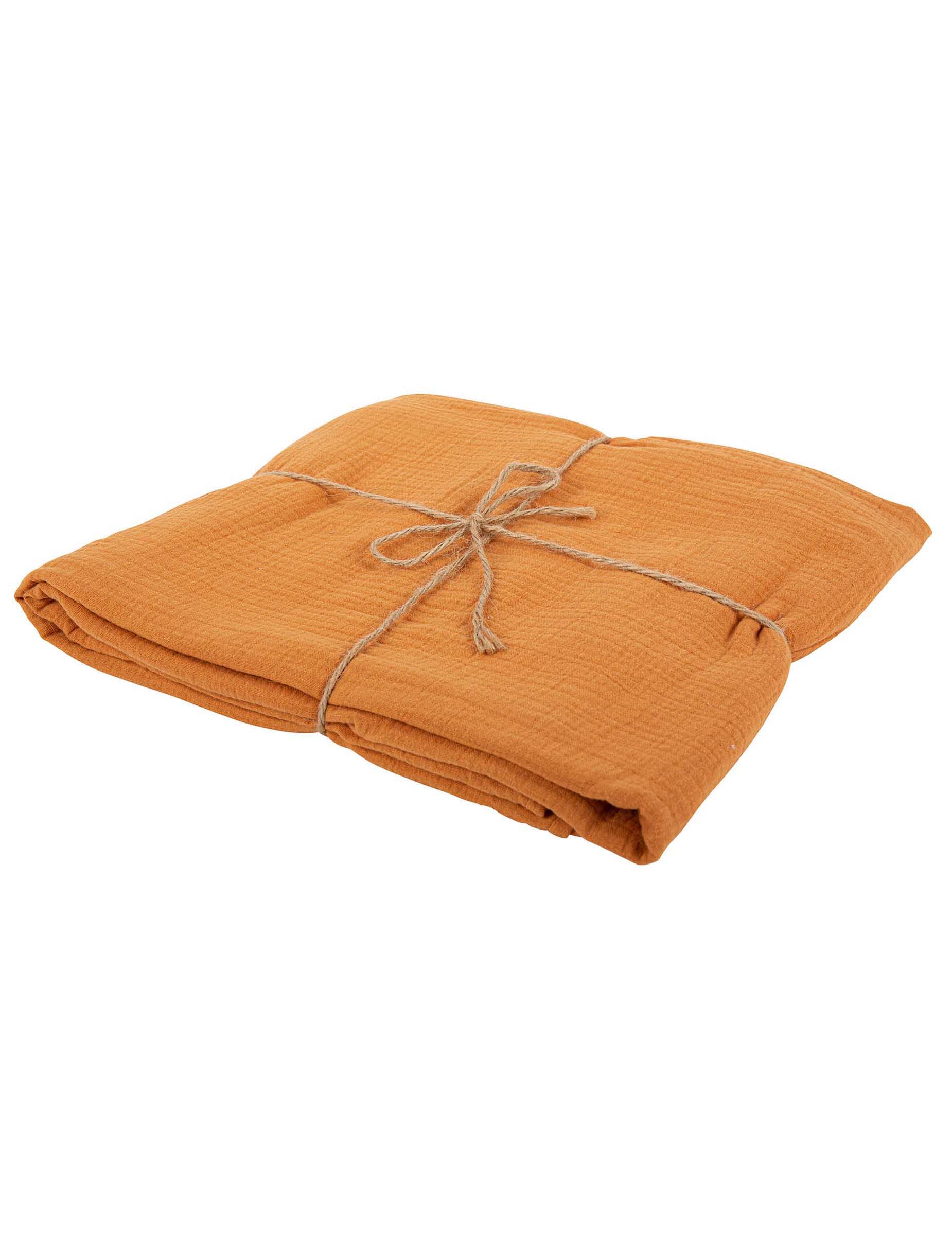 Vylepšete tím své párty stoly bavlněný gázový ubrus s oranžovo-okrovými odstíny. Tento model spálené země o rozměrech 130 x 240 cm nabízí lehký a přirozený povrch.