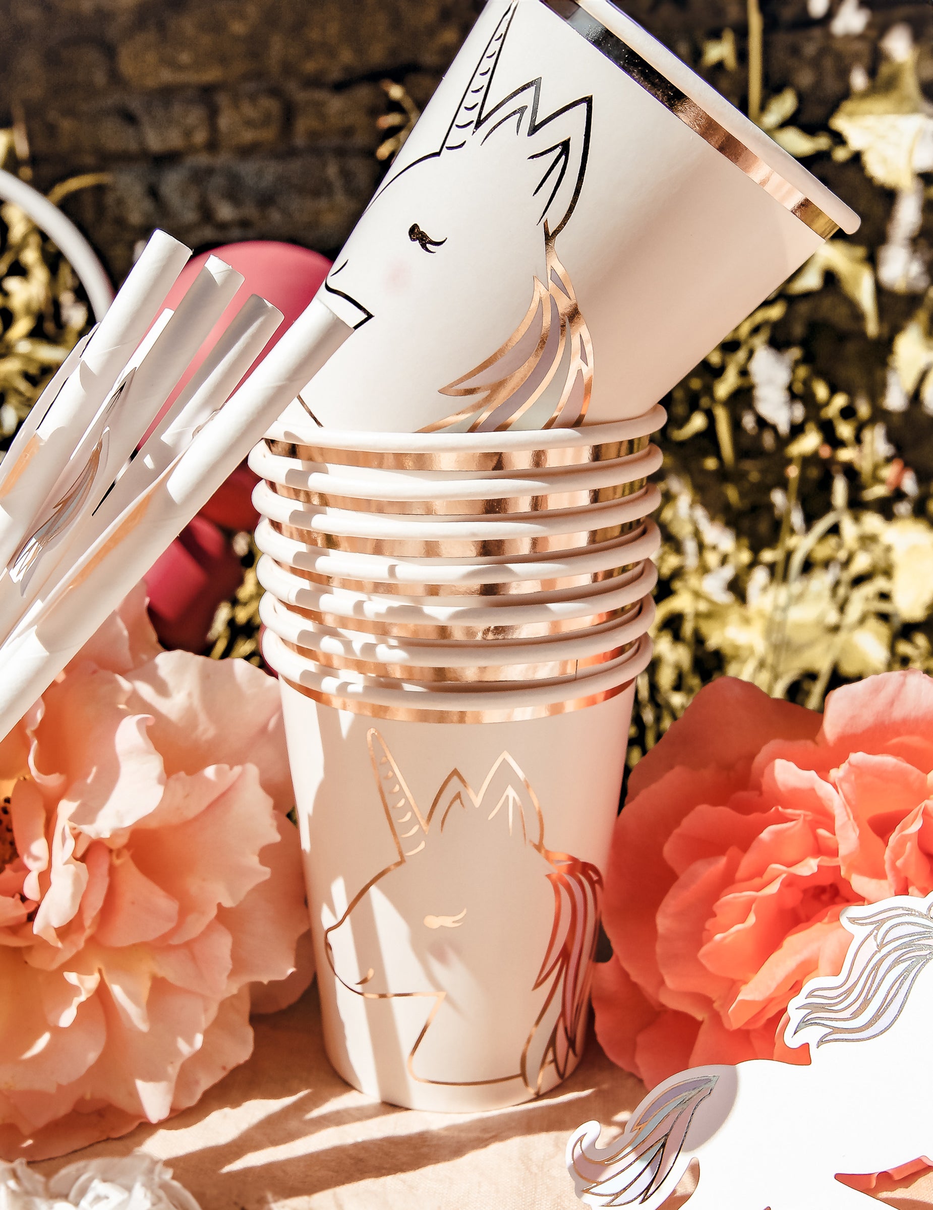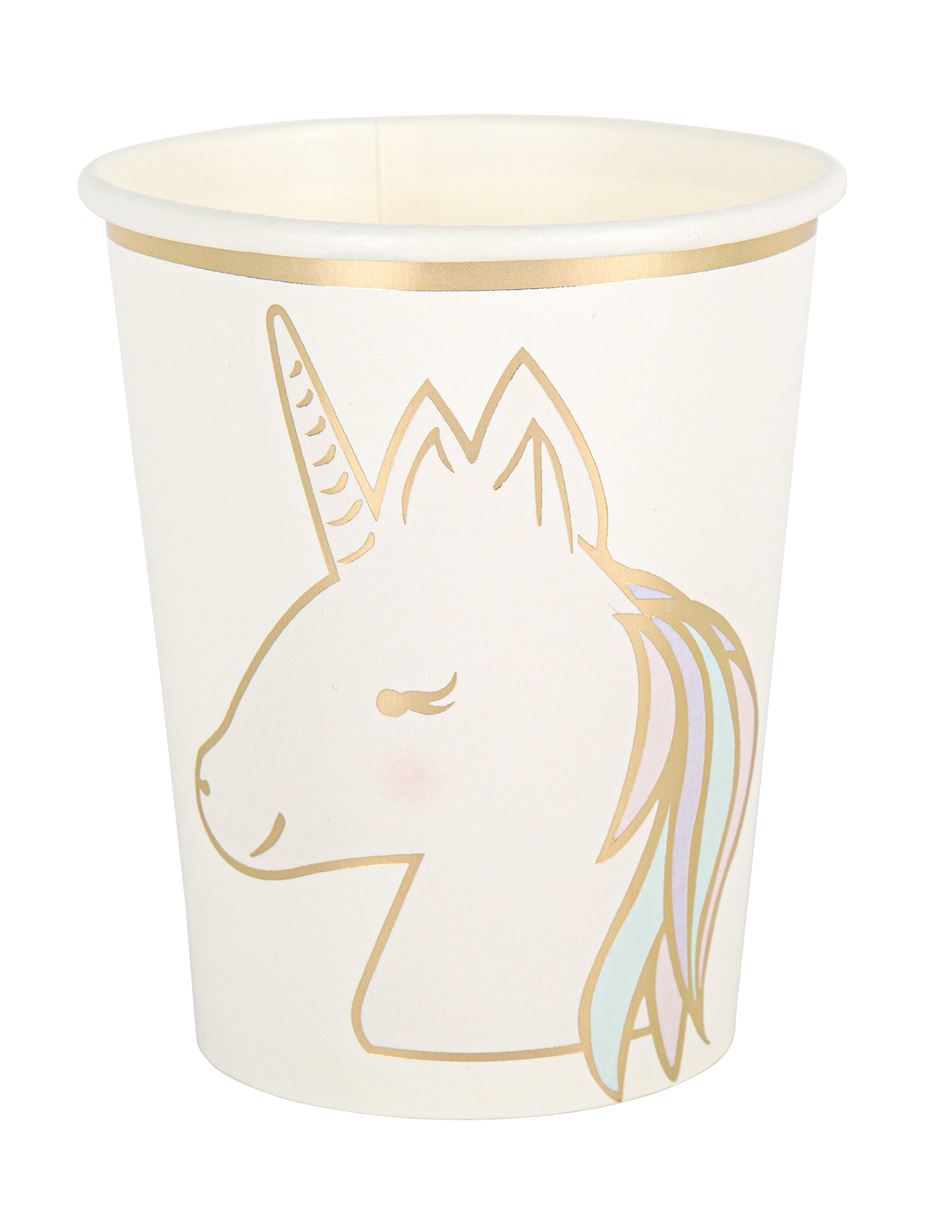 8 pastelových a zlatých jednorožcových kartonových kelímků 250 ml magických
