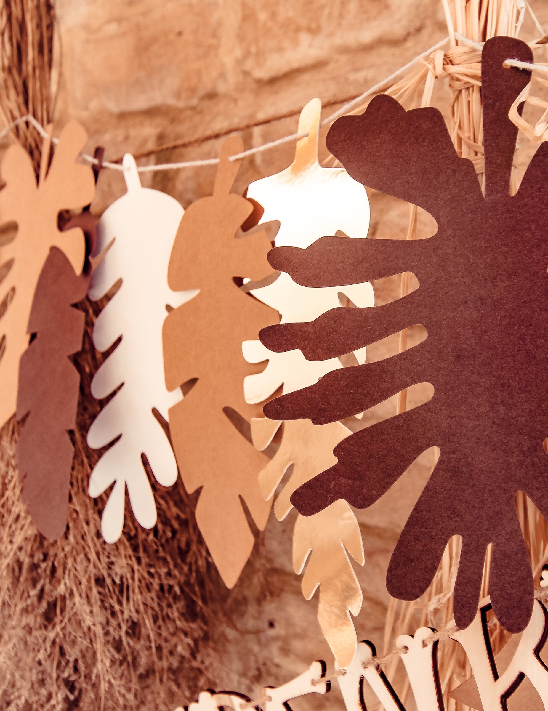 Přineste s tím přirozený dotek věnec 2 metrů zdobené tropické listy v čokoládových, kraftových, slonovinových a zlatých barvách. Je ideálním doplňkem pro vylepšení dekorace narozeniny nebo a tématická párty s elegancí.