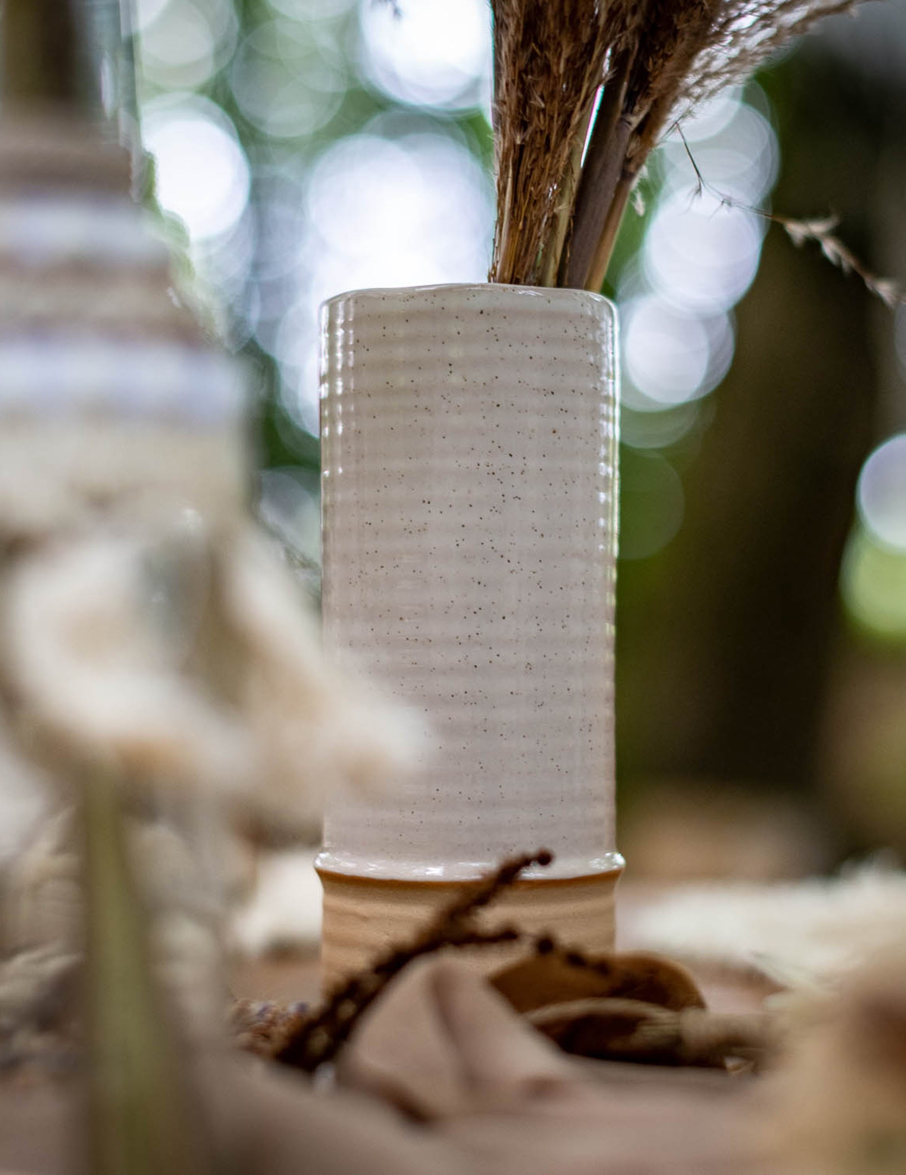 S výškou 19 cm pro průměr 6,5 cm, toto váza keramiku zdobí jemné vřesové béžové a pískové tóny. Ideální pro zvýraznění a kytice sušených květin, pampové trávy nebo přírodní prvky, je to dokonalý doplněk k vytvoření a bohémská atmosféra a teplo ve svém pokoji.