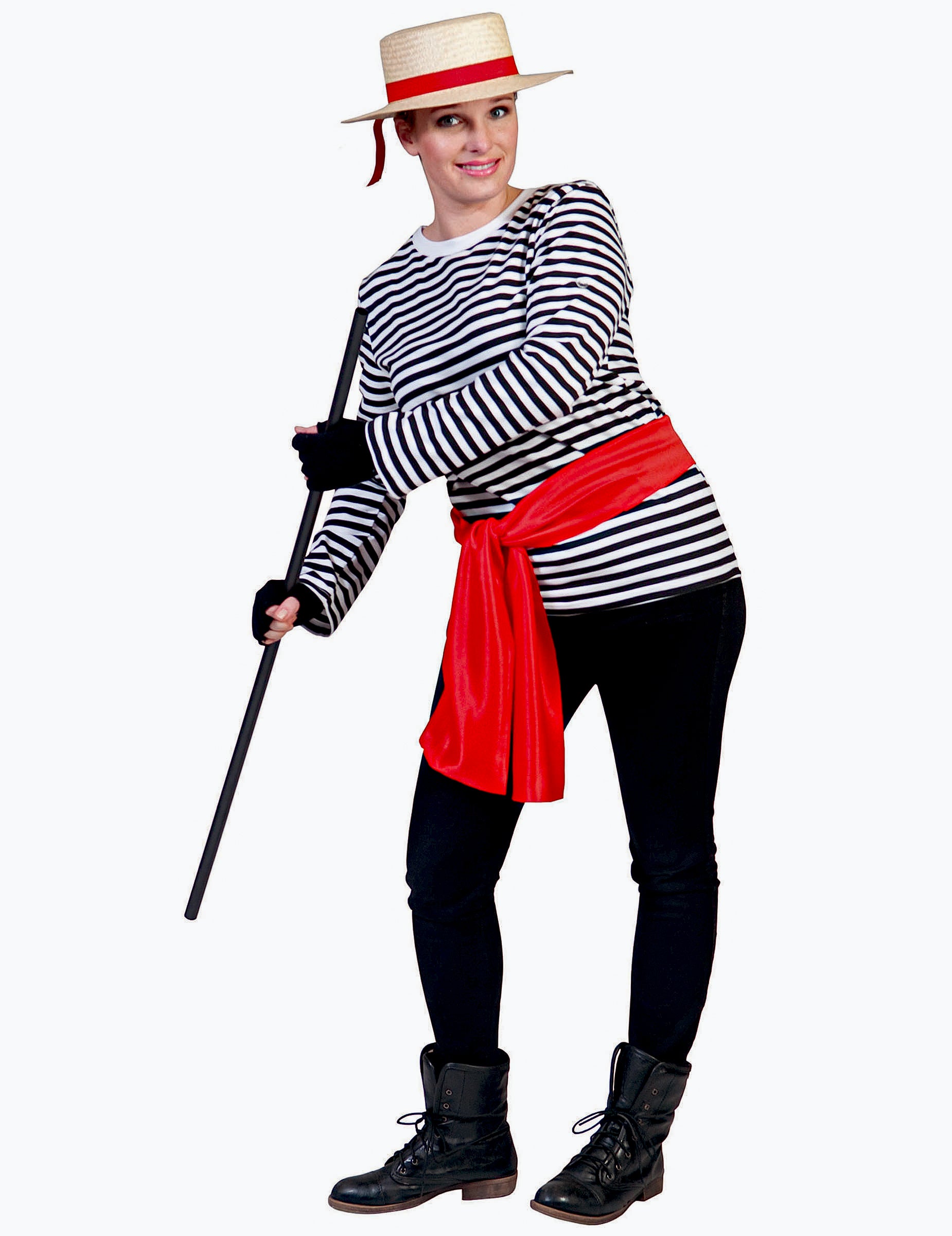 Toto tričko s motivem pantomimy je určeno pro dospělé. Má dlouhé rukávy a je zdobené černobílými pruhy. Toto tričko bude perfektním doplňkem vašeho kostýmu pantomimy nebo vězně na karneval.
