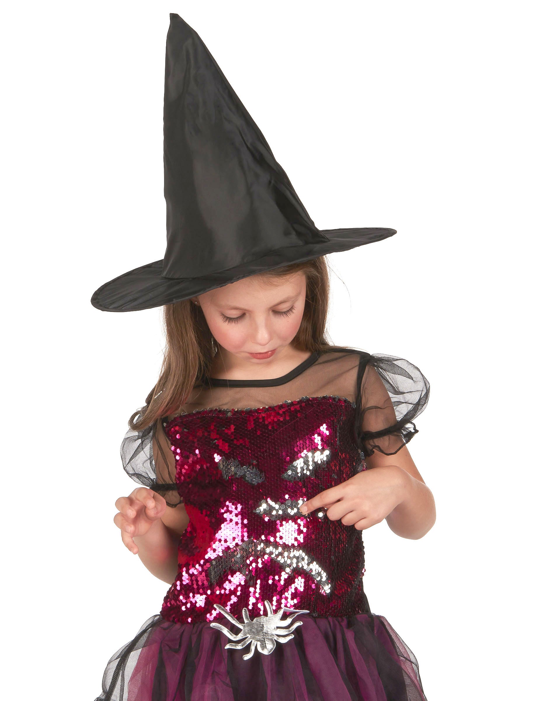 Špičatý černý klobouk dodá tomuto kostýmu finální kouzlo.