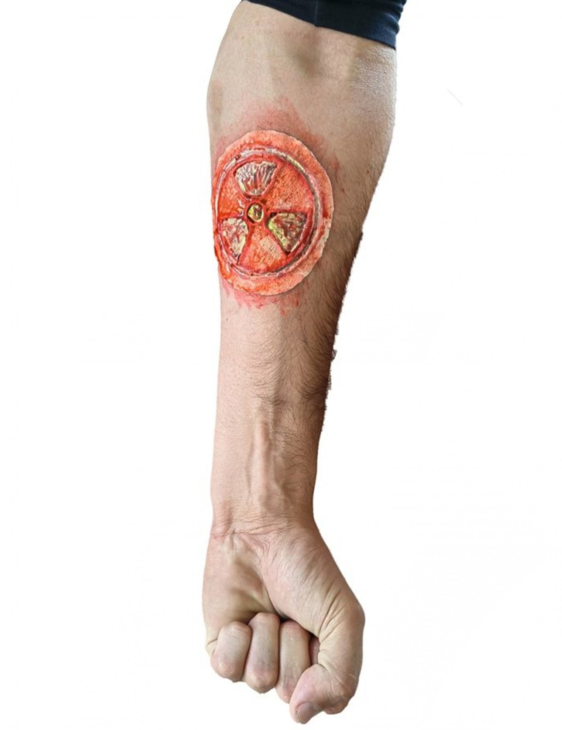 Tato falešná radioaktivní rána je určena pro dospělé. Je to rána s motivem radioaktivity. A pro ještě větší vzrušení svítí ve tmě a je fosforeskující. Vneste na svou halloweenskou párty atmosféru katastrofického filmu s touto radioaktivní ranou, která svítí ve tmě!