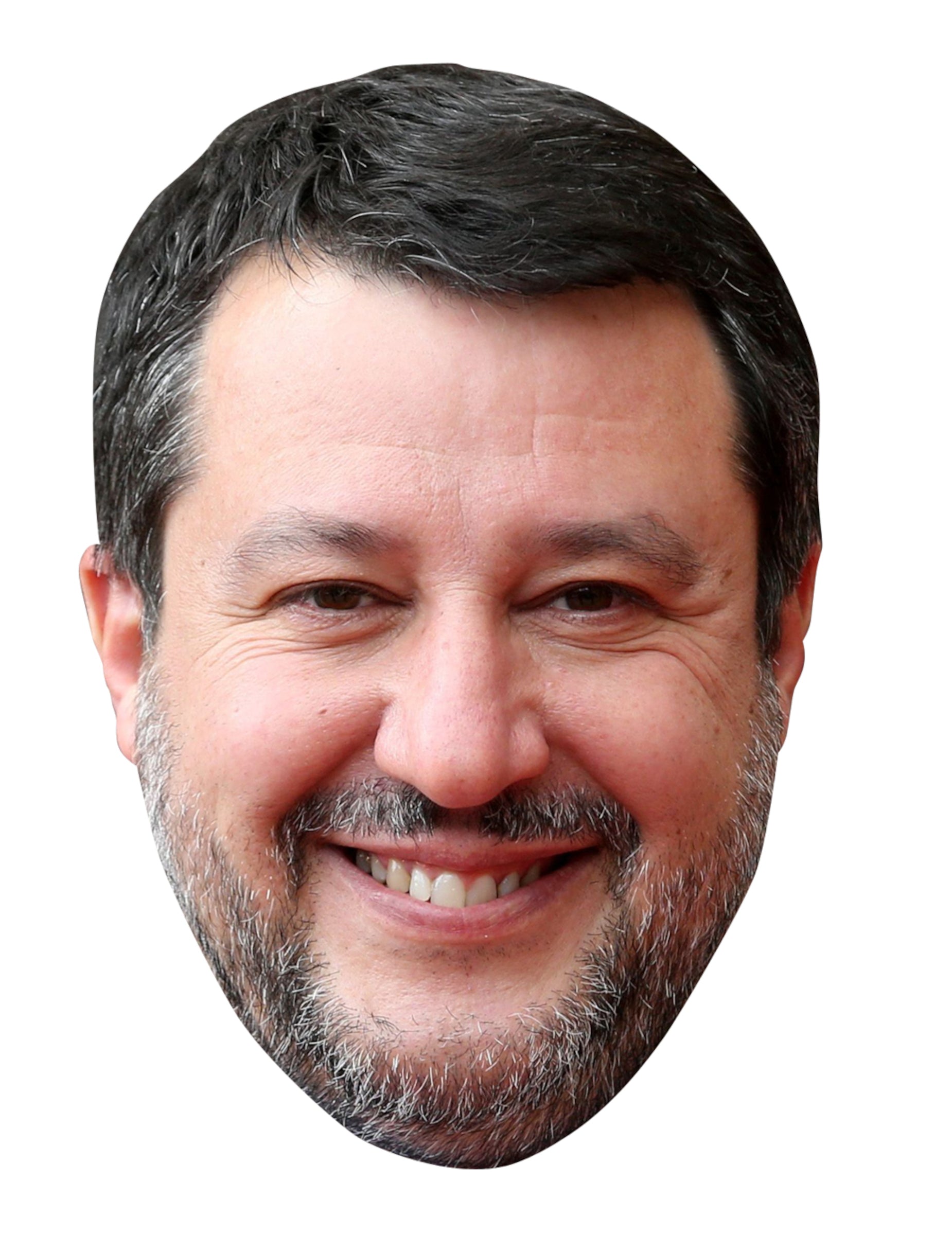 Tato kartonová maska pro dospělé představuje italského politika Mattea Salviniho.