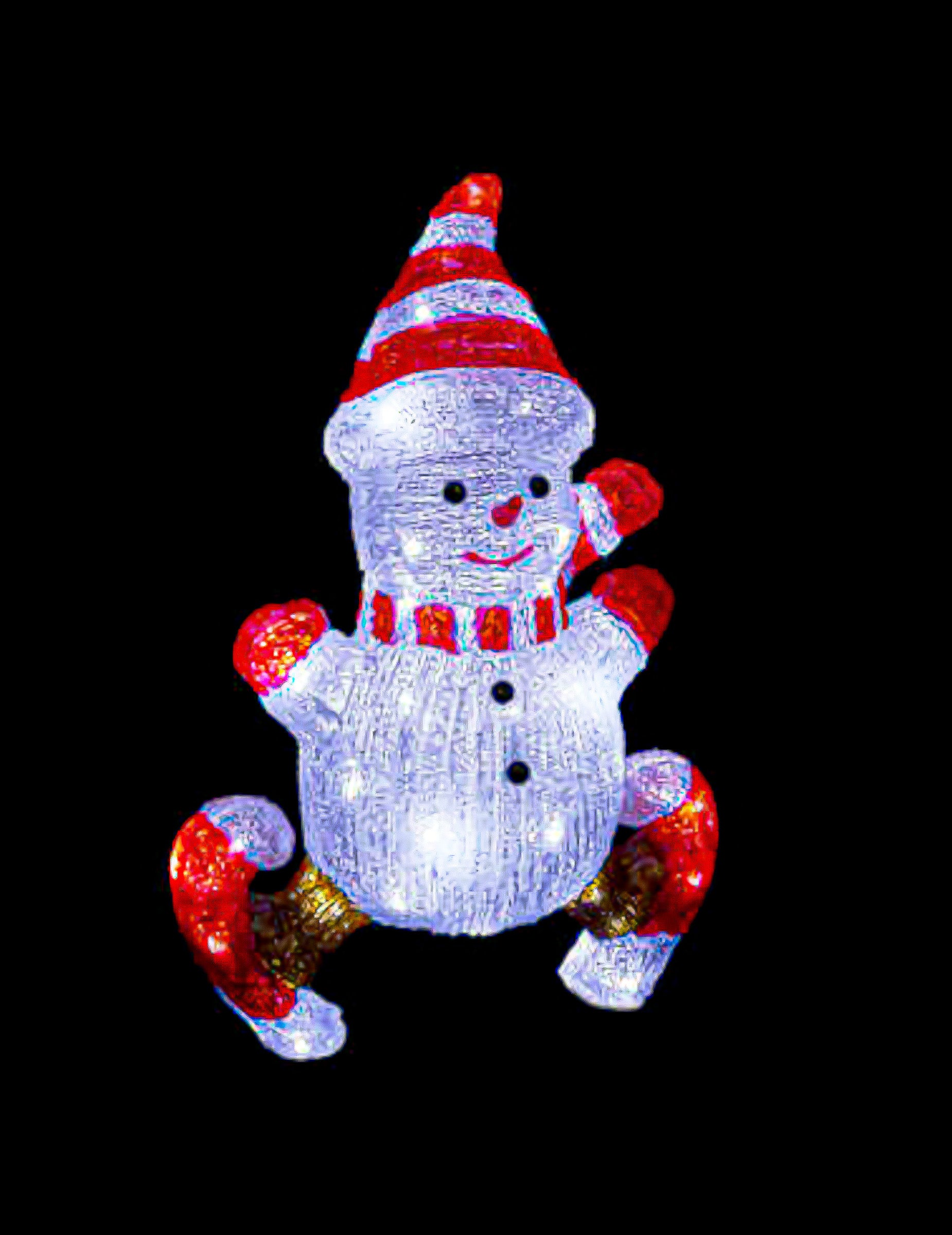 Toto světelná dekorace z 50 cm přibližně se zasune do elektrické zásuvky, aby svítila během prázdnin. Obsahuje sněhuláka na bruslích oblečeného v červenobílé čepici, rukavicích a šátku. Více LED žárovek osvětluje celou konstrukci. Toto jasný sněhulák vylepší vaši výzdobu Vánoce, ať už se rozhodnete pro umístění uvnitř nebo venku.