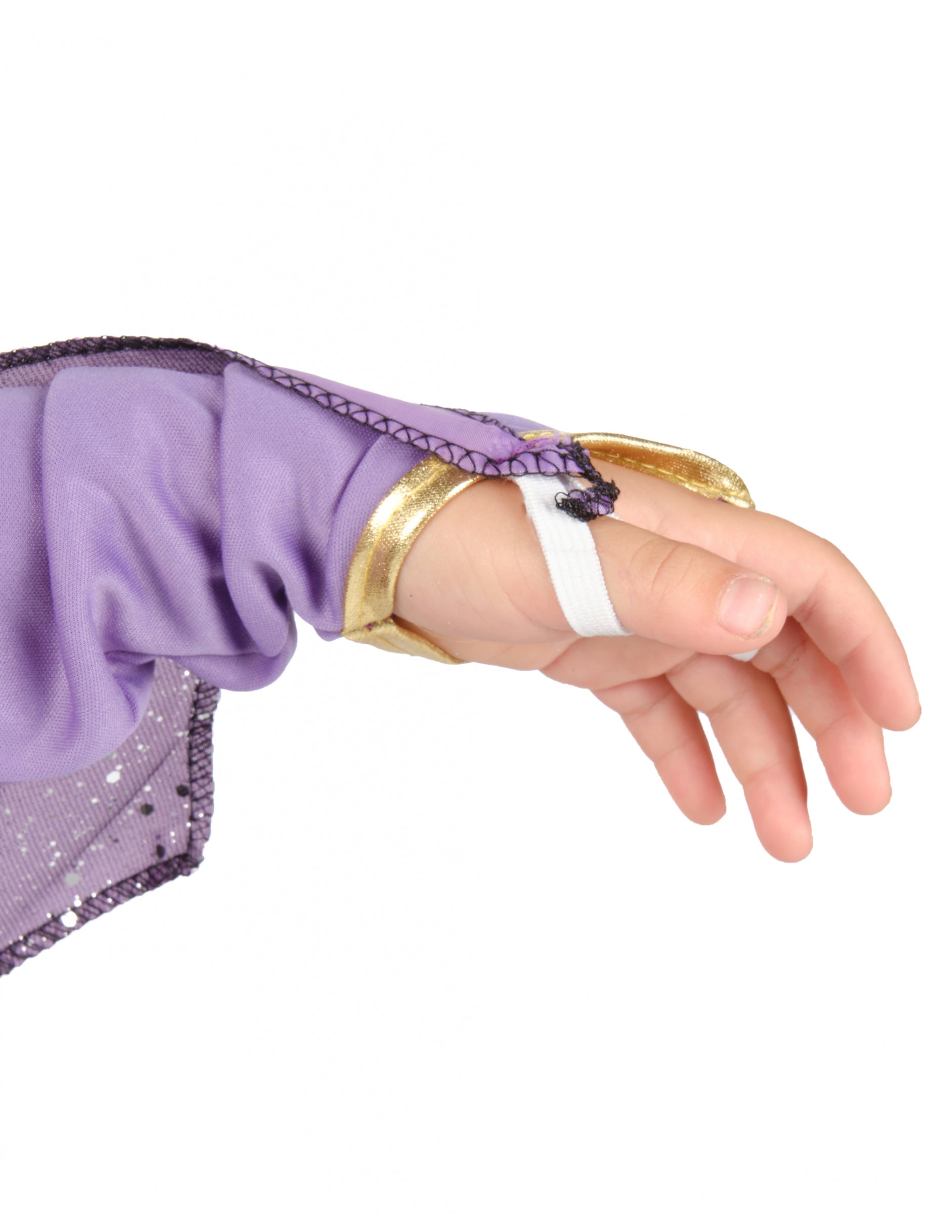 Fialové dlouhé šaty mají třpytivá fialová křídla. Rukávy jsou světle fialové a zbytek šatů je tmavě fialový. Hrudní část je fialová se zlatými měsíci a hvězdami a je přešněrovaná zlatou stuhou. Lemy šatů jsou zlaté.