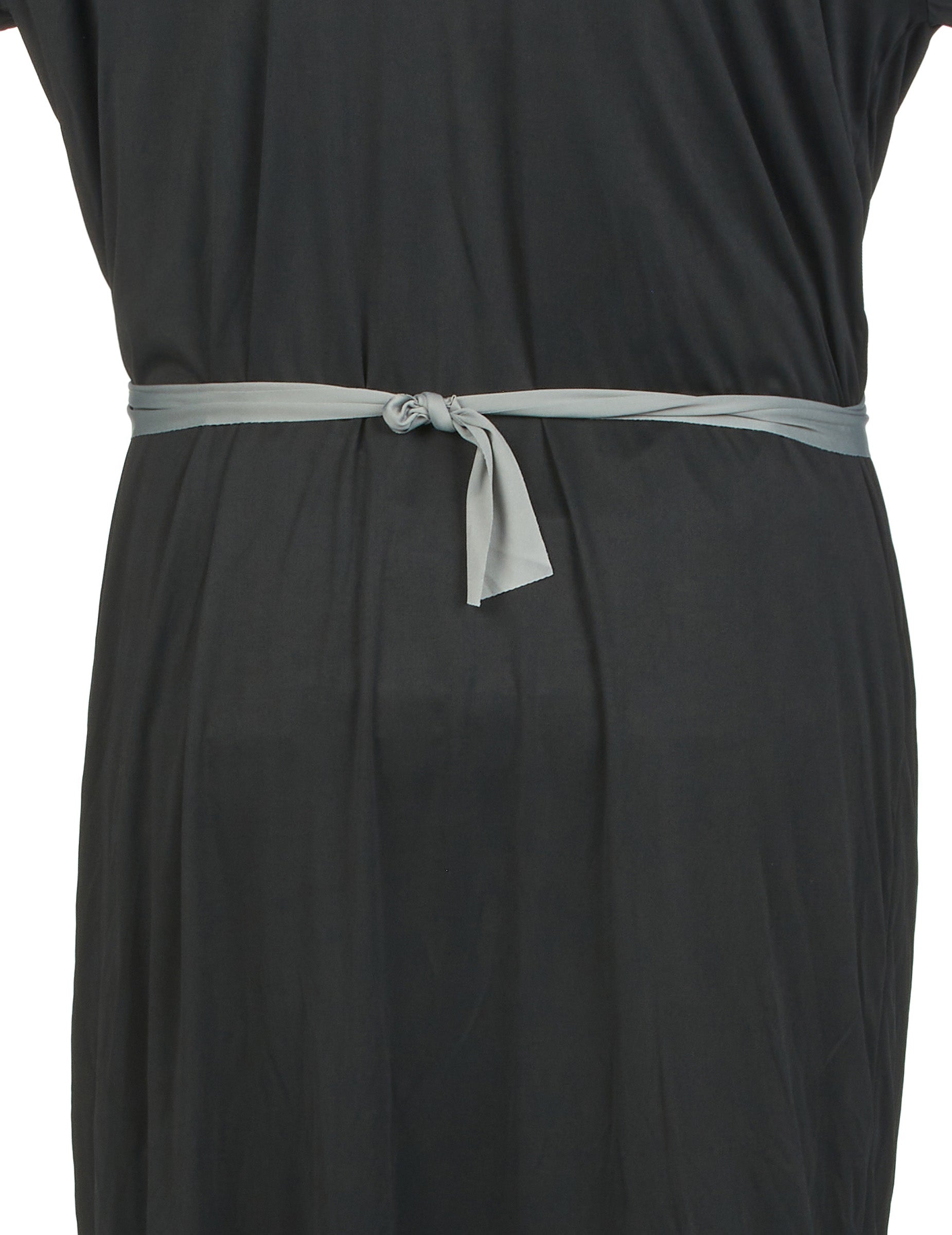 Šaty jsou dlouhé a černé. Pásek je šedé barvy a můžete jej utáhnout pro zvýraznění pasu.