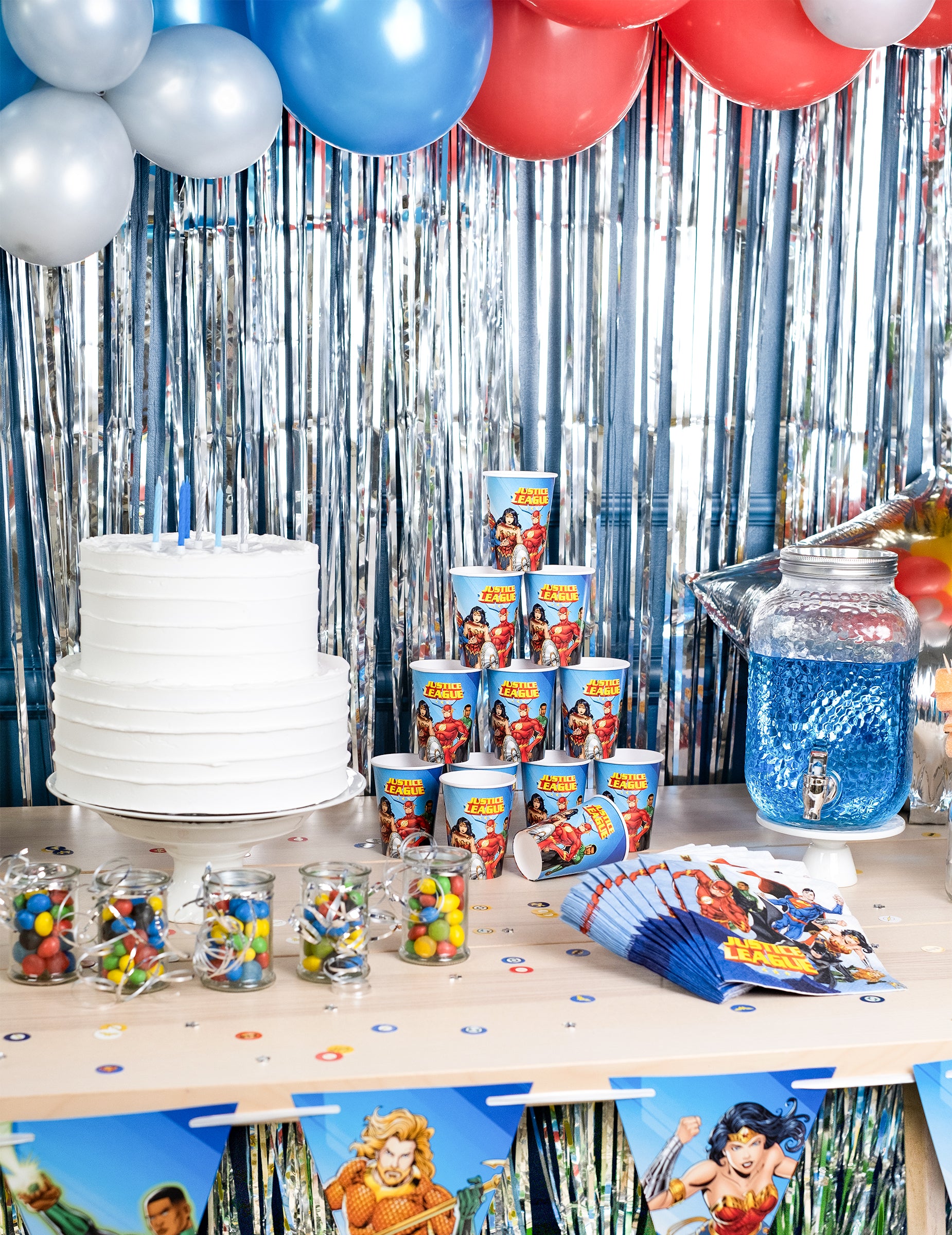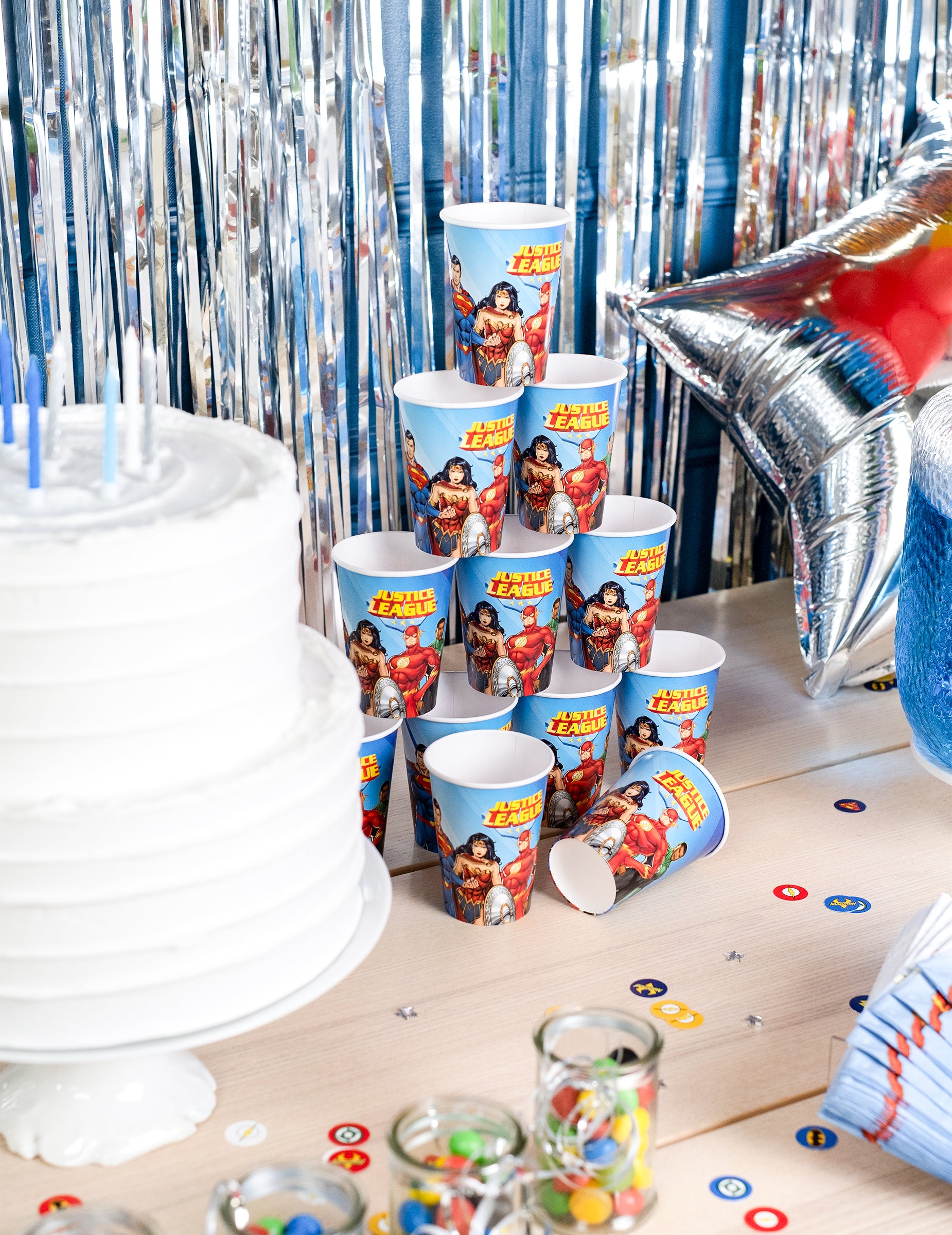 Mají kapacitu 210 ml. Jsou vyrobeny z kartonu a potištěny slavnými superhrdiny na modrém podkladu. Najdete zde Aquamana, Batmana, Supermana, Wonderwoman, Flashe a Cyborga.