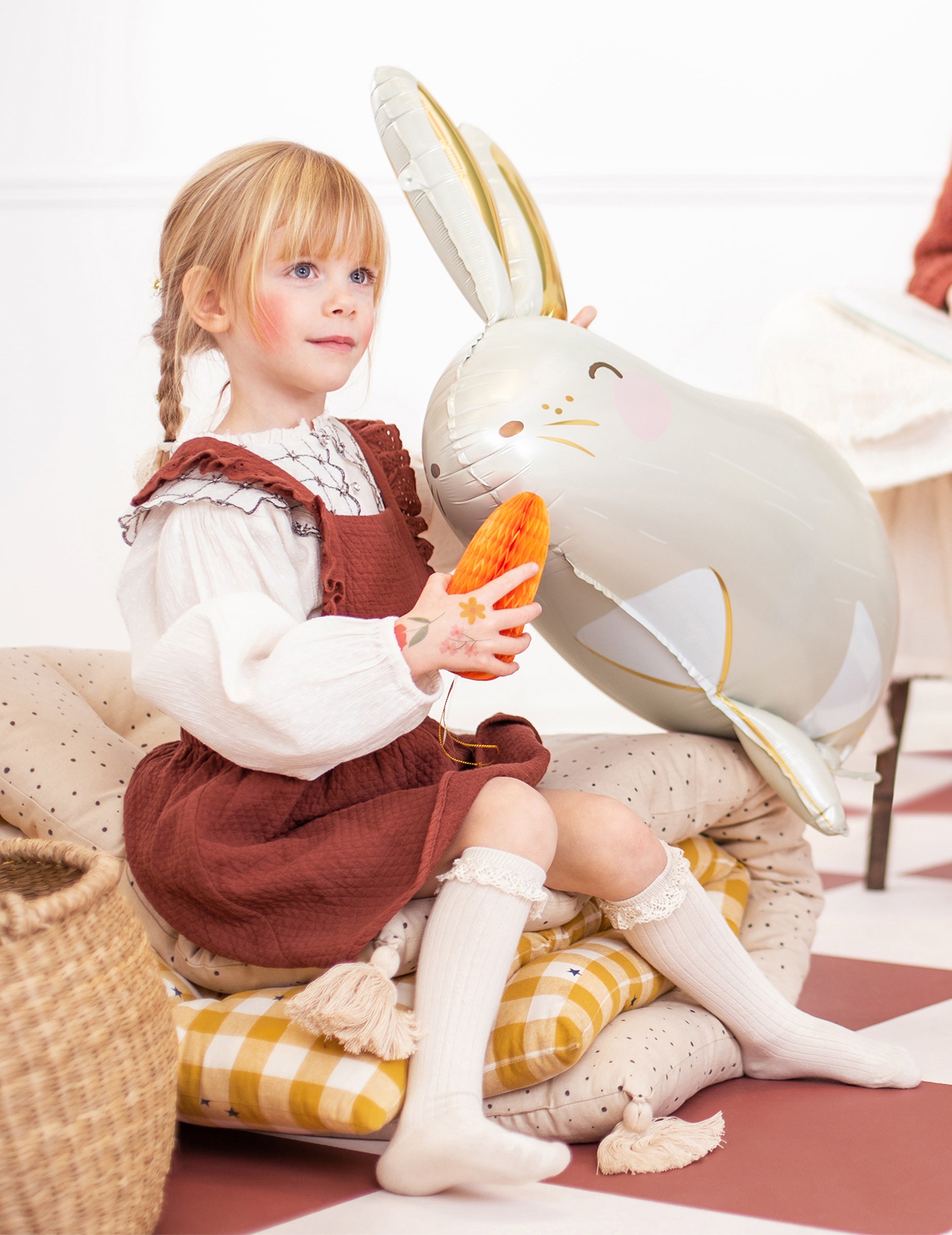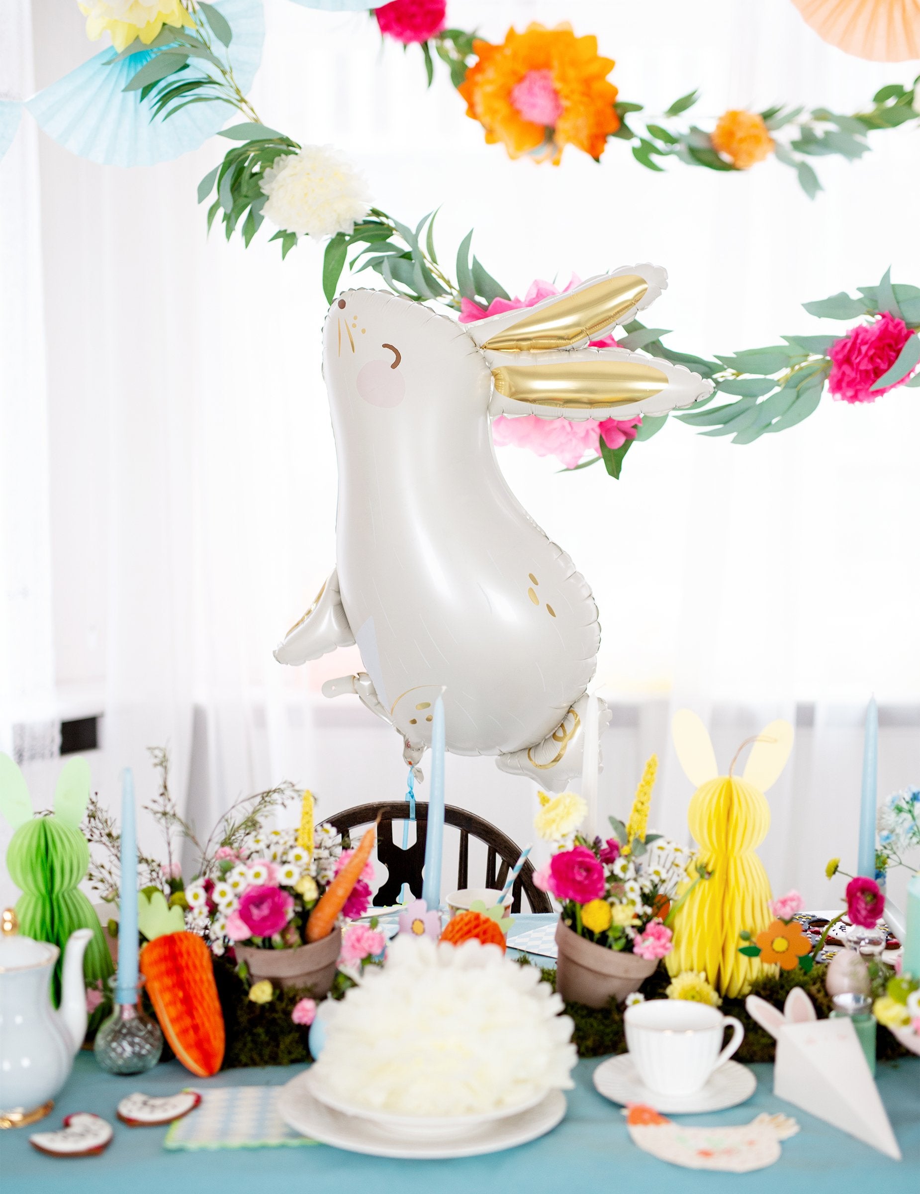 Vylepšete svou výzdobu tímto bílý balónek ve tvaru králíka obří 70 x 72 cm. Je vyroben z odolného hliníku a vyznačuje se elegantní krémově bílou barvou v kontrastu s pěknými zlatými oušky. Toto balónek ve tvaru králíka je kompatibilní s nafukováním vzduchem nebo heliem v závislosti na vašich potřebách. Je to perfektní doplněk pro vylepšení a narozeniny se zvířecí tématikou nebo oslavit Velikonoce se stylem!