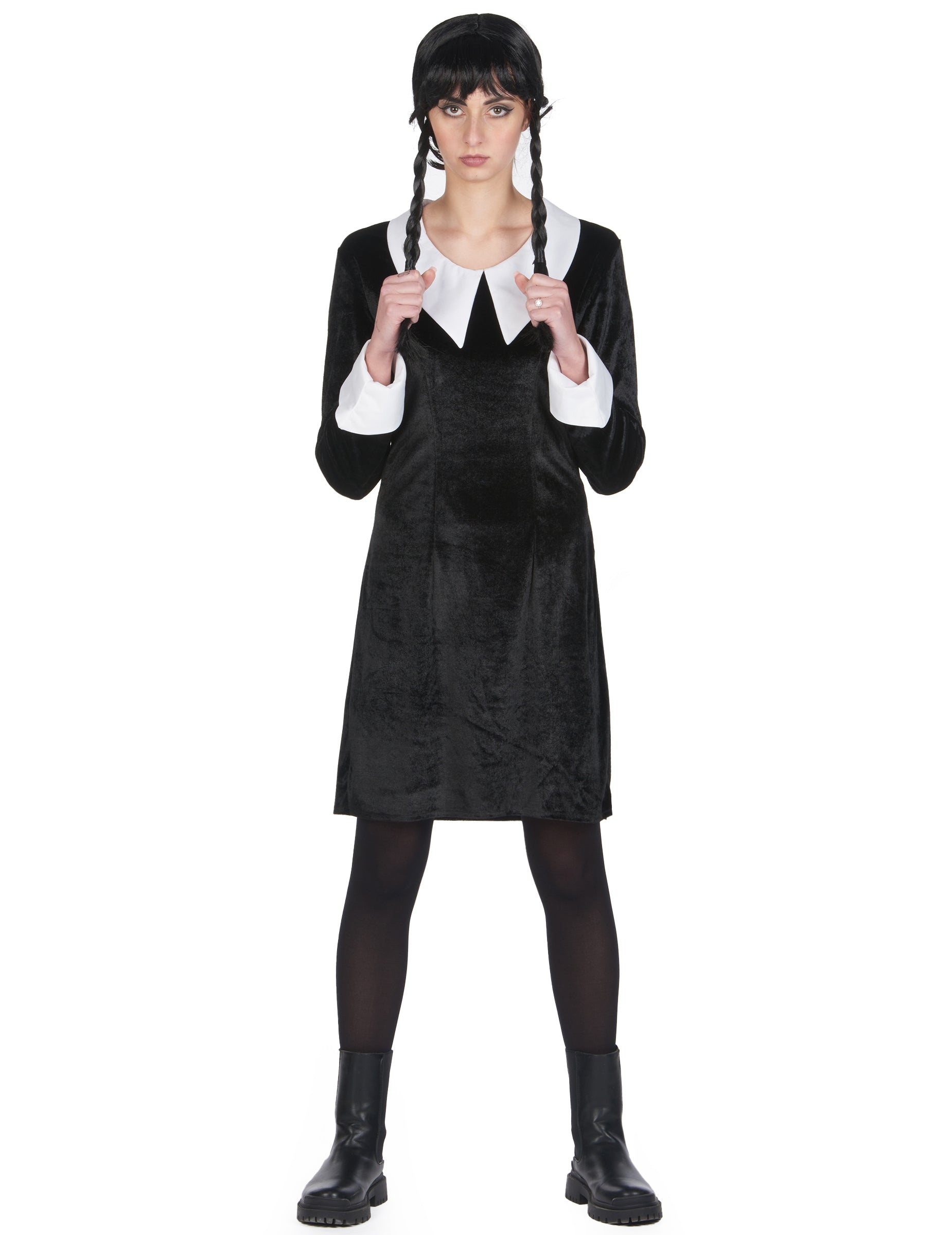 Tento kostým můžete ozdobit černou pletenou parukou a kotníčkovými botami pro 100% gotický styl.