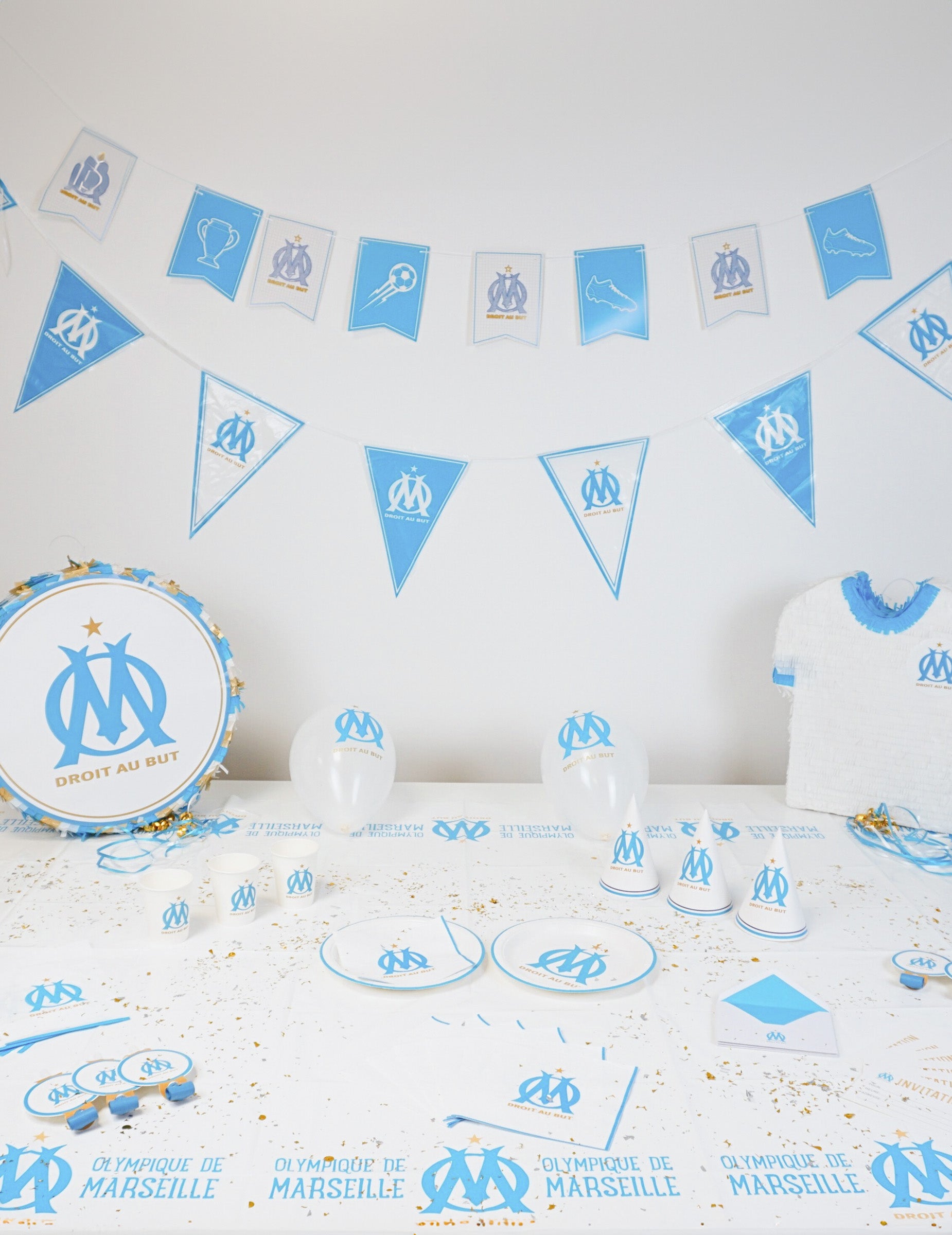 Tento Fanions Garland je na oficiální licenci Olympique de Marseille. Skládá se z oblohy a bílých modrých vlajek. Na každé vlajce najdete logo OM nebo fotbalový motiv jako míč, trofej nebo dokonce křeče. Tento kartonový věnec měří přibližně 270 cm na délku. Během příštích setkání vašeho oblíbeného fotbalového týmu to bude perfektní pro pěknou dekoraci!