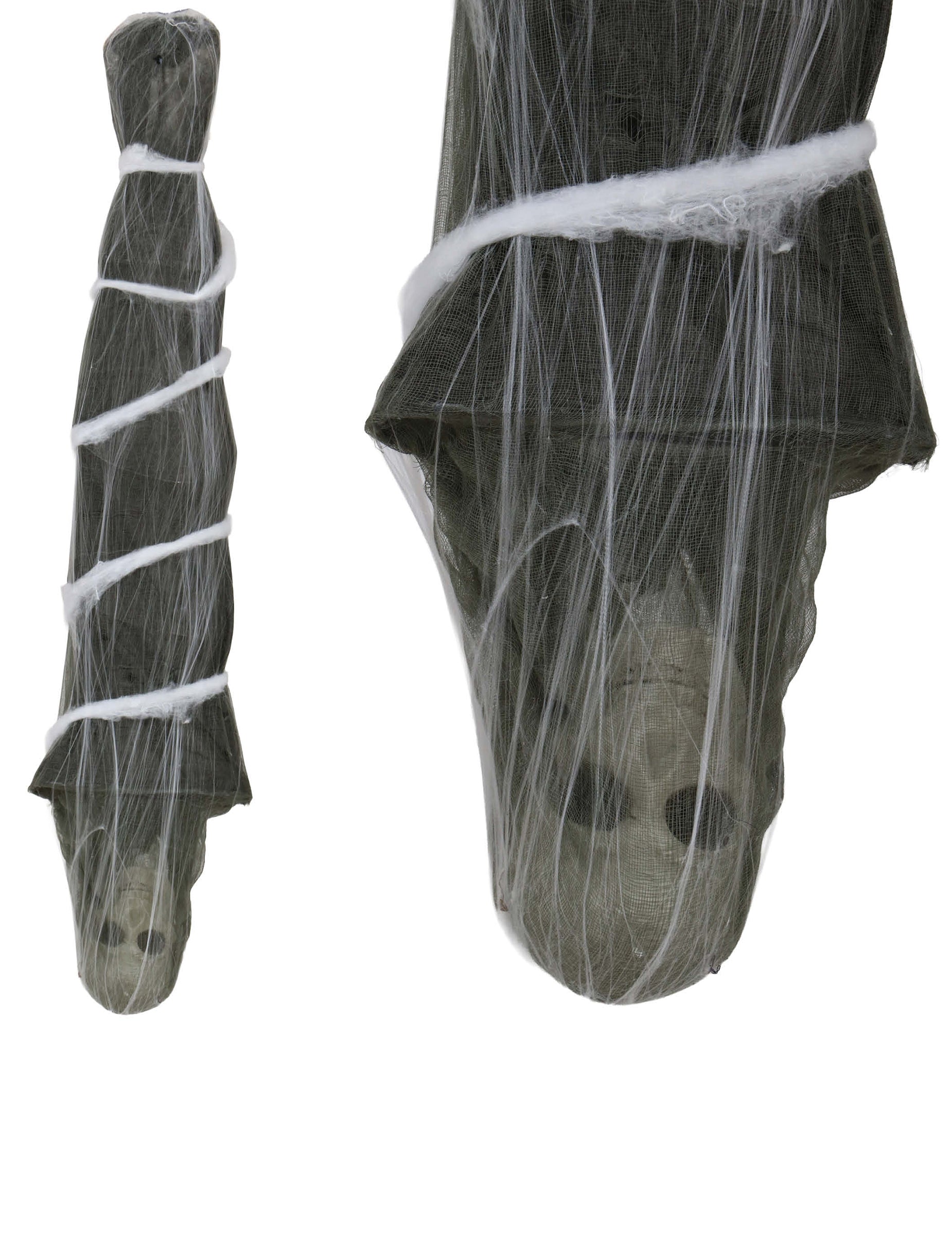 Tato 75cm závěsná dekorace s motivem mumie cm přibližně. Vyrobeno z polyesteru a PVC, má realistické detaily a světelné efekty (baterie nejsou součástí balení) pro strašidelný efekt. Mumie je zabalena v obvazech, které jí dodávají autentický a děsivý vzhled. Pečlivě propracované detaily a integrovaná světla pomáhají vytvořit tajemnou atmosféru. Snadno se zavěsí a lze ji umístit na různá místa pro maximální vizuální efekt. Tato svítící mumie je ideální pro Halloween, večírky s egyptskou tematikou nebo akce ve strašidelném domě a dodá vaší výzdobě dramatický nádech, zejména pokud ji zavěsíte na tmavém místě, aby se zdůraznil její světelný efekt.