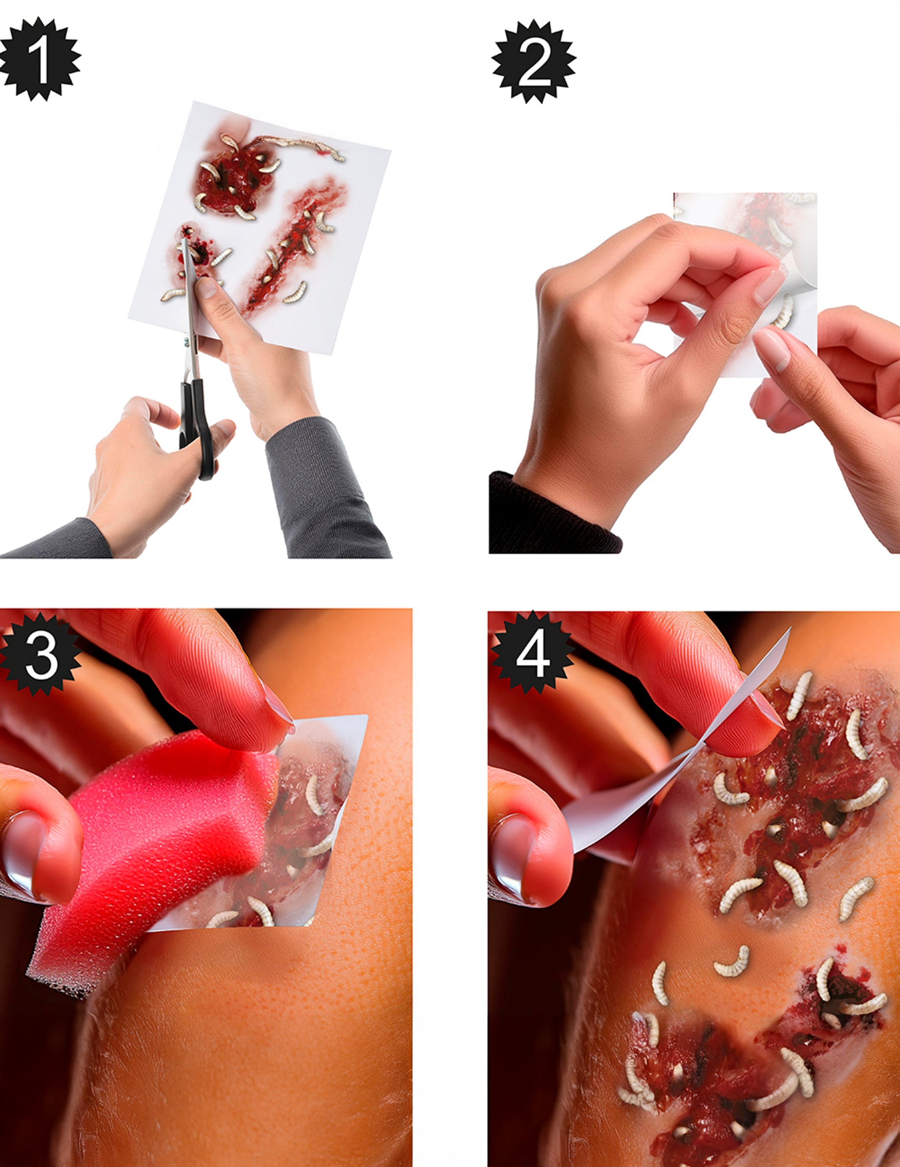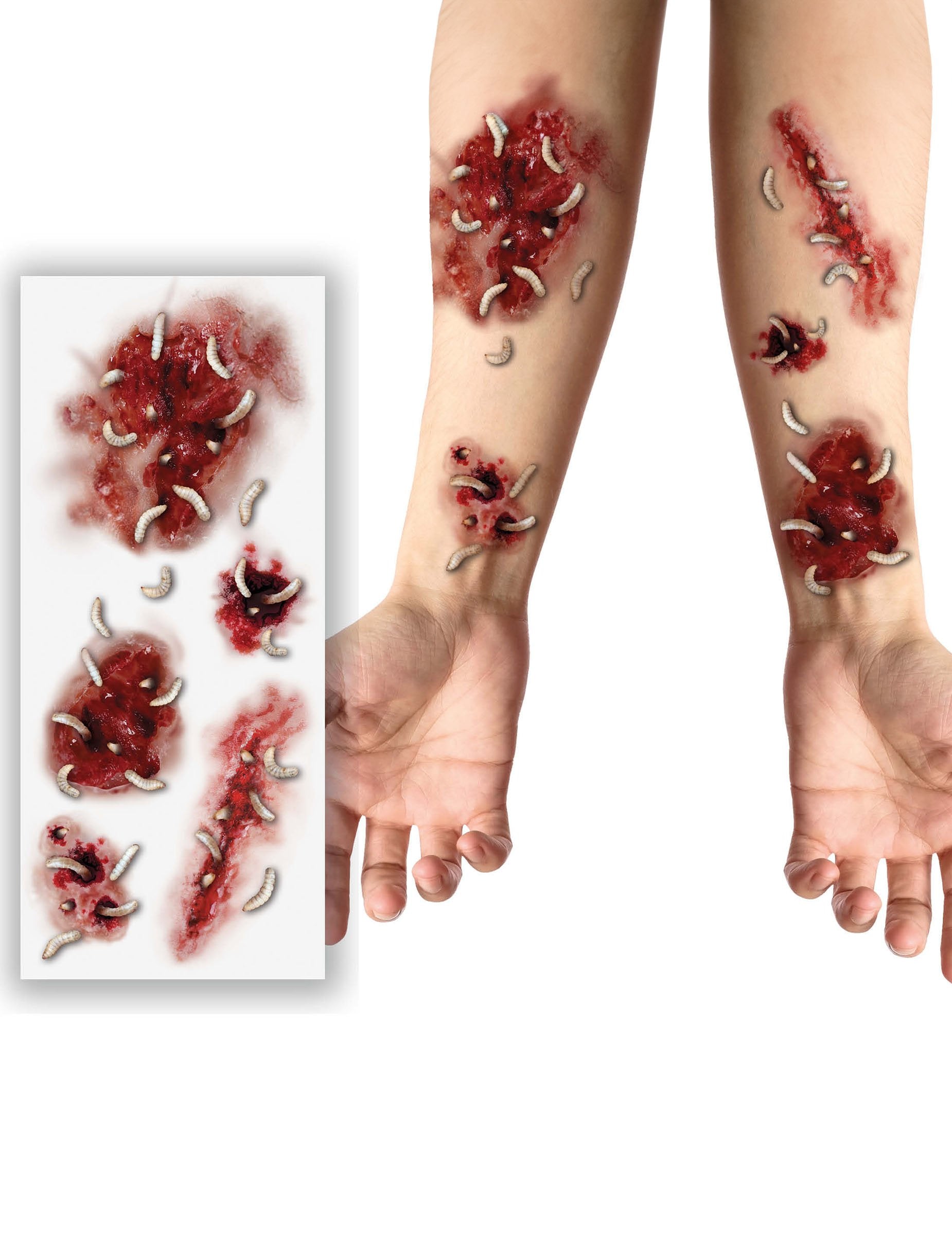 Tato deska tetování představující rány s veršemi 30 x 13 cm. Nabízí důvody pro zranění červů, ideální pro děsivé a realistické vykreslování. Tetování ukazují zesílení a hluboké rány, zdobené rampovacími veršemi a zlověstnými detaily. Každý design je pečlivě vyvinut pro výrazný vizuální efekt. Snadno se nainstalují a odstraní, umožňují rychlou transformaci. Tato tetování s rány s verzí přinese děsivý dotek do vašeho halloweenského kostýmu!