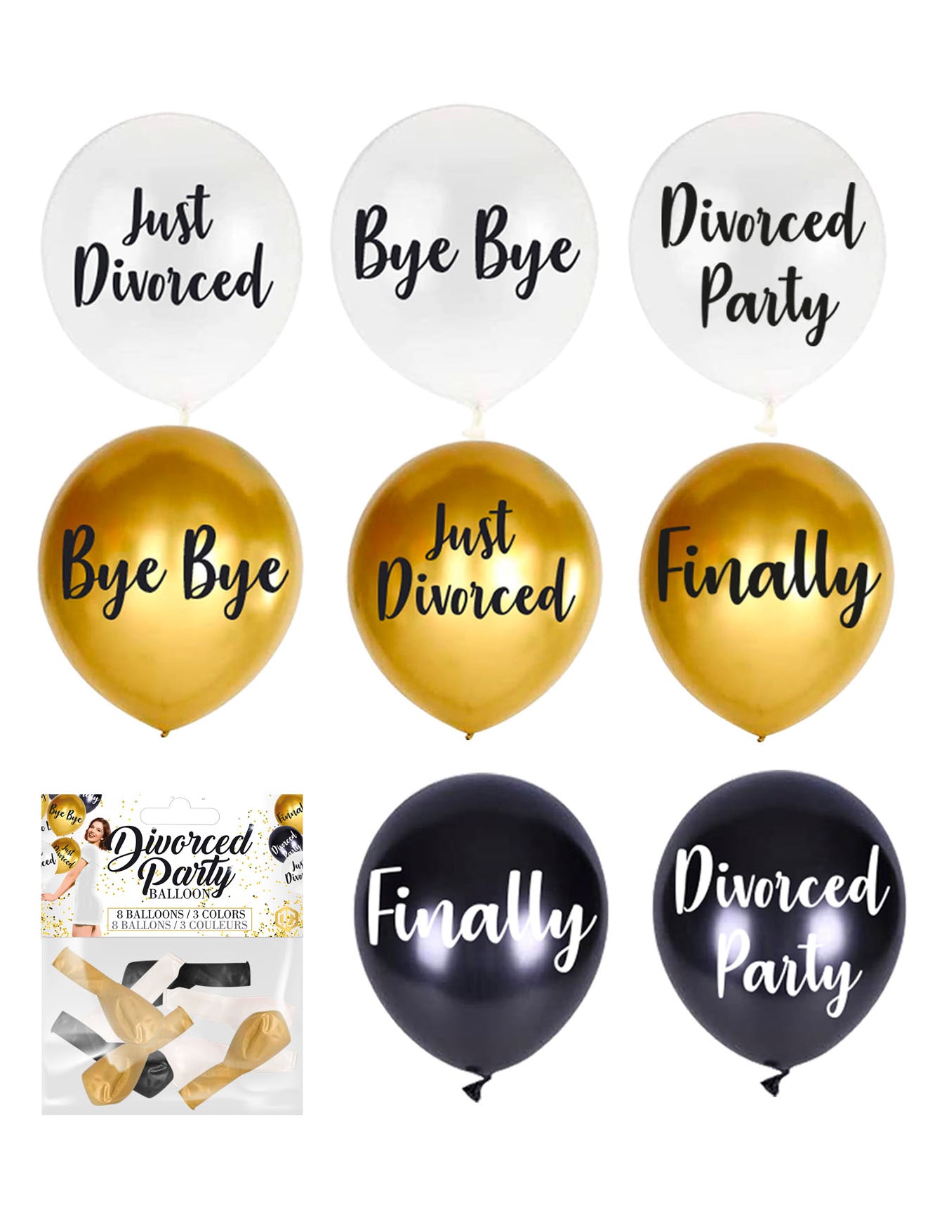 Vneste na svou akci dávku lehkosti s tímto balením 8 latexových balónků asi 30 cm. Dostupné v černá, bílá a zlato, tyto doplňky obsahují vtipné vzkazy jako „Sbohem“, „Konečně“ nebo „ Rozvedený večírek ". Ideální pro oslavu nového začátku balón lze nafouknout vzduchem nebo heliem podle vašich dekorativních přání. Proměňte symbolickou životní etapu v radostný a nepředvídatelný okamžik. Jedná se o ideální sadu pro „ Rozvedený večírek » úspěšný, mísící eleganci a posměch na oslavu vaší svobody.