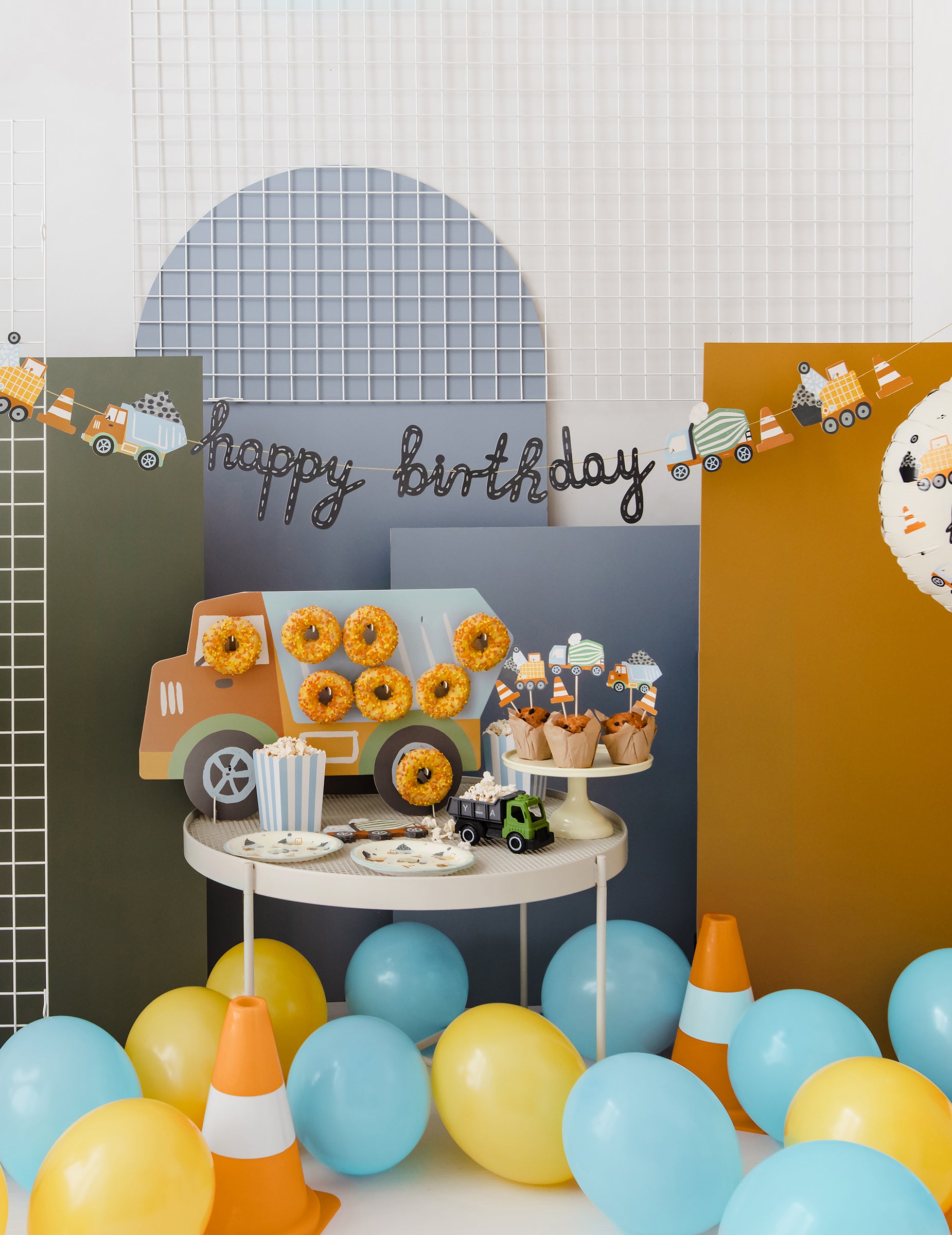 Tyto párty napichovátka jsou prodávána v sadě po 6 kusech. Měří mezi 4 a 7 cm na výšku a zobrazují nákladní auta a staveništní kužely.