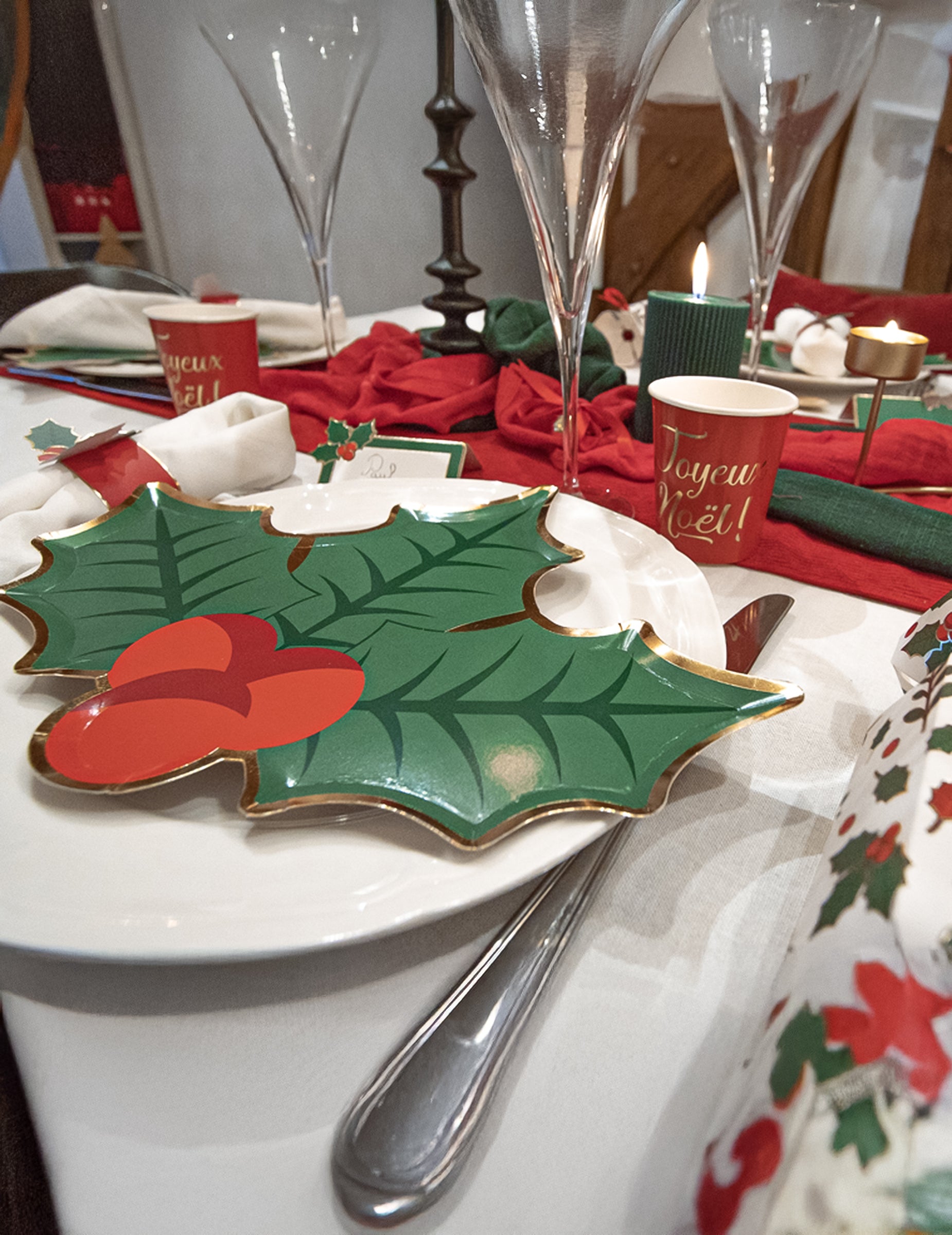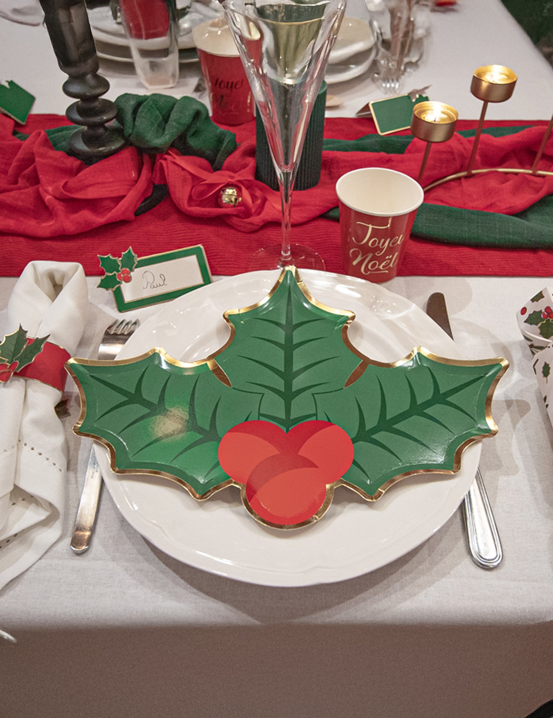 Dodejte svému Silvestru slavnostní nádech s touto sadou 8 talířů v originálním kartonu vystřiženém ve tvaru listí. Rozměry cca 23 x 32 cm, zobrazuje každý kus 3 zelené listy cesmíny zdobený červenými bobulemi a zvýrazněný elegantním zlatým okrajem. Tyto vánoční cesmína talíře jsou ideálním doplňkem pro vylepšení vašeho dekorace na vánoční stůl a ohromte své hosty.