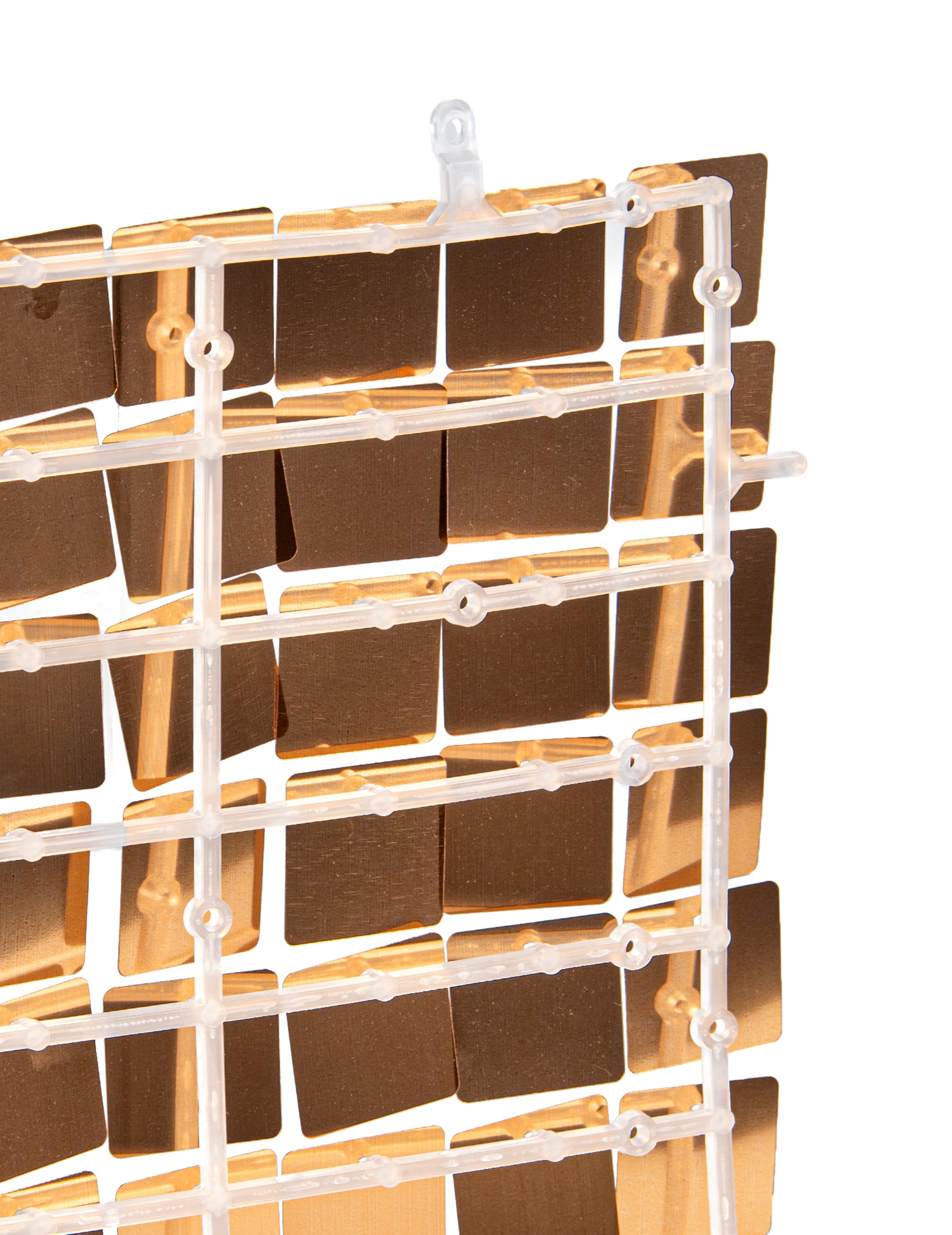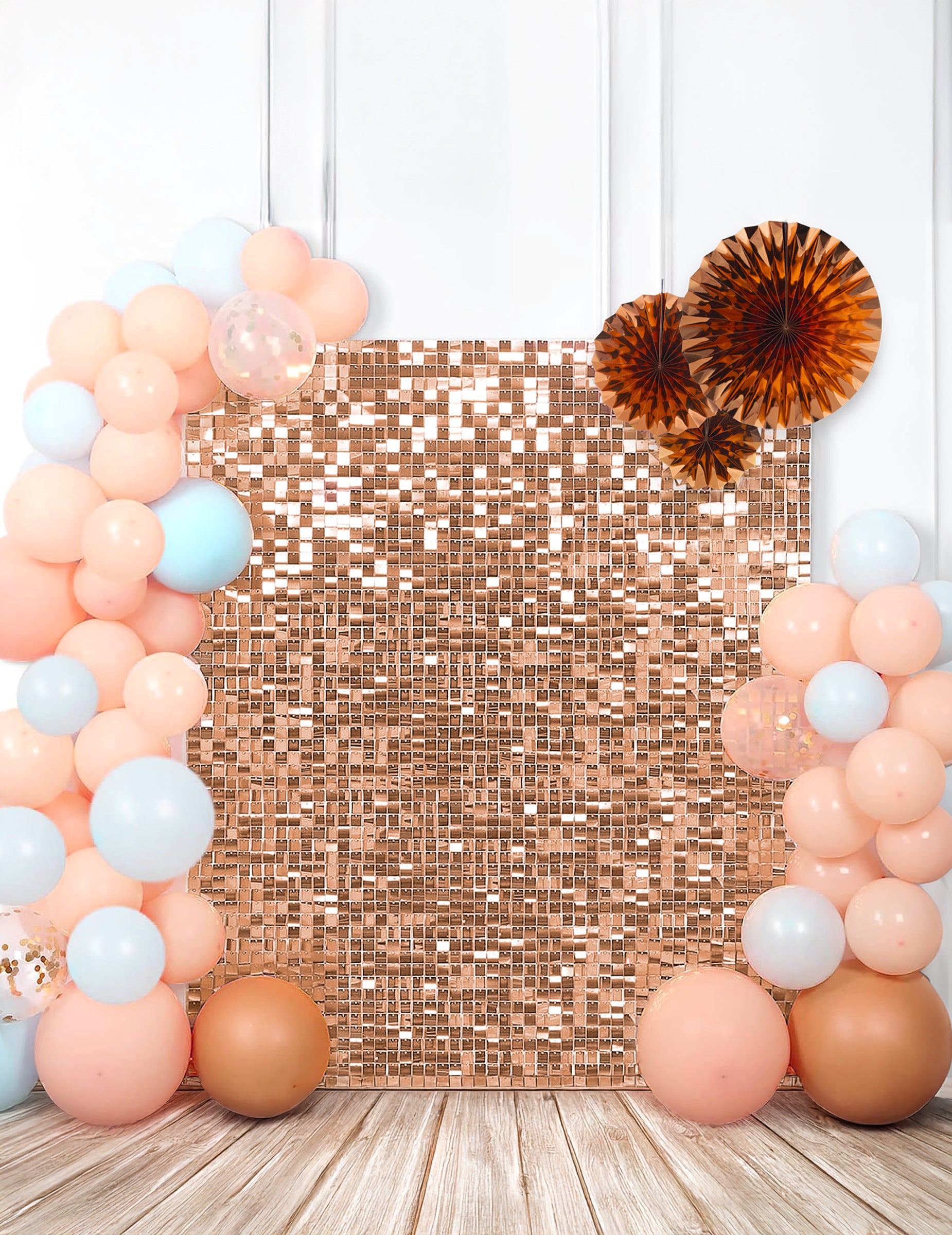 Tento panel pozadí, přibližně 30 x 30 cm, Má lesklý růžovo-zlatý povrch s drobným kostkovaným vzorem. Ideální pro dodání elegantního nádechu vašim fotografiím. Je ideální pro narozeniny s růžovo-zlatou tematikou. Pro optimální výsledky doporučujeme zakoupit 6 kusů o výšce 180 cm. cm.