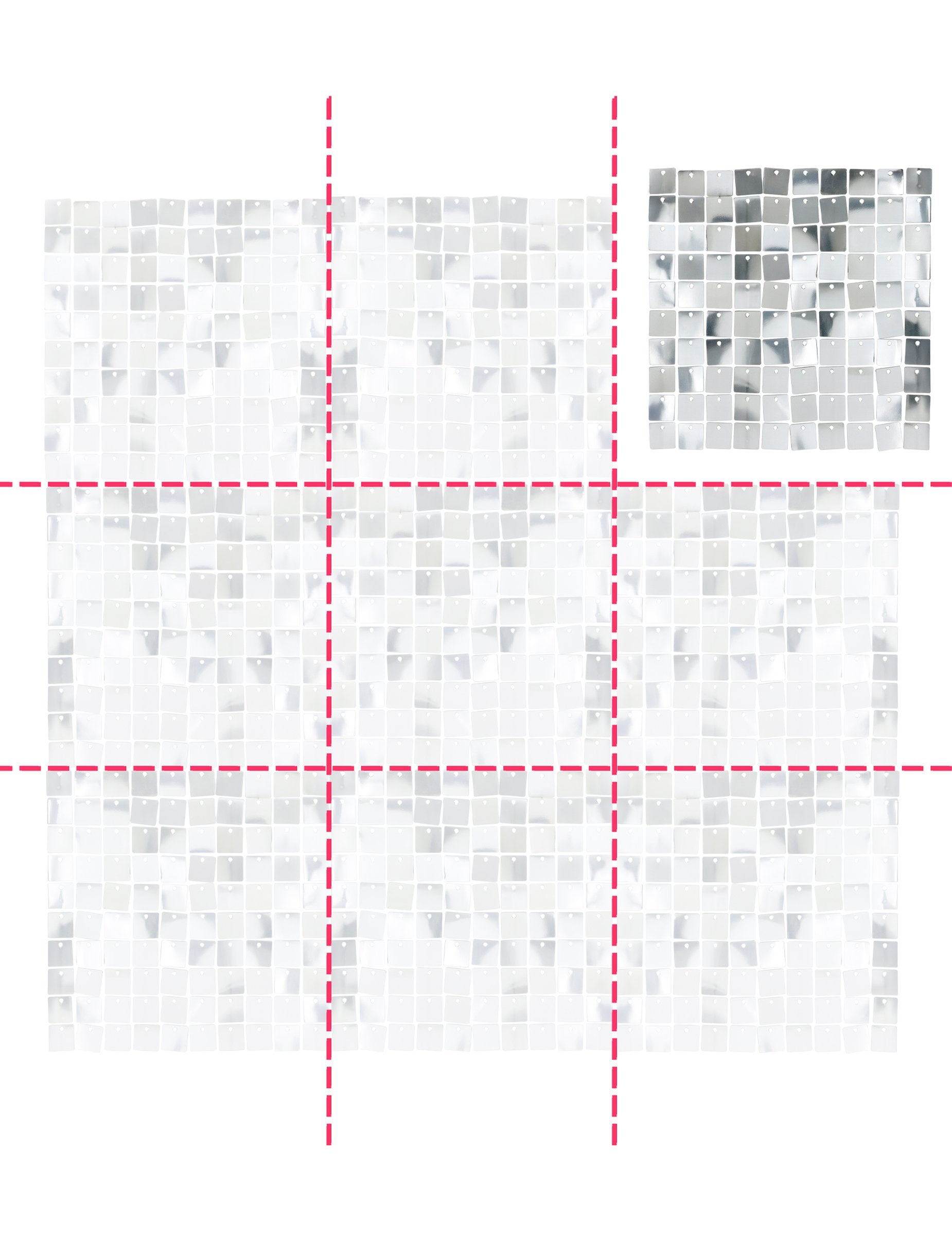Tento panel měří přibližně 30 x 30 cm a je vyroben z malých lesklých stříbrných dlaždic, ideálních pro slavnostní a elegantní atmosféru. Je ideální pro vytvoření fotografického pozadí pro narozeniny, Silvestra nebo jakoukoli jinou stříbrnou párty a dodá vaší dekoraci okouzlující nádech. Tip na dekoraci: Pro kompletní stěnu a ještě působivější efekt doporučujeme spojit několik panelů (přibližně 6 cm vysoké, abyste dosáhli 180 cmRozzářte své oslavy s touto nezbytnou stříbrnou cedulí!