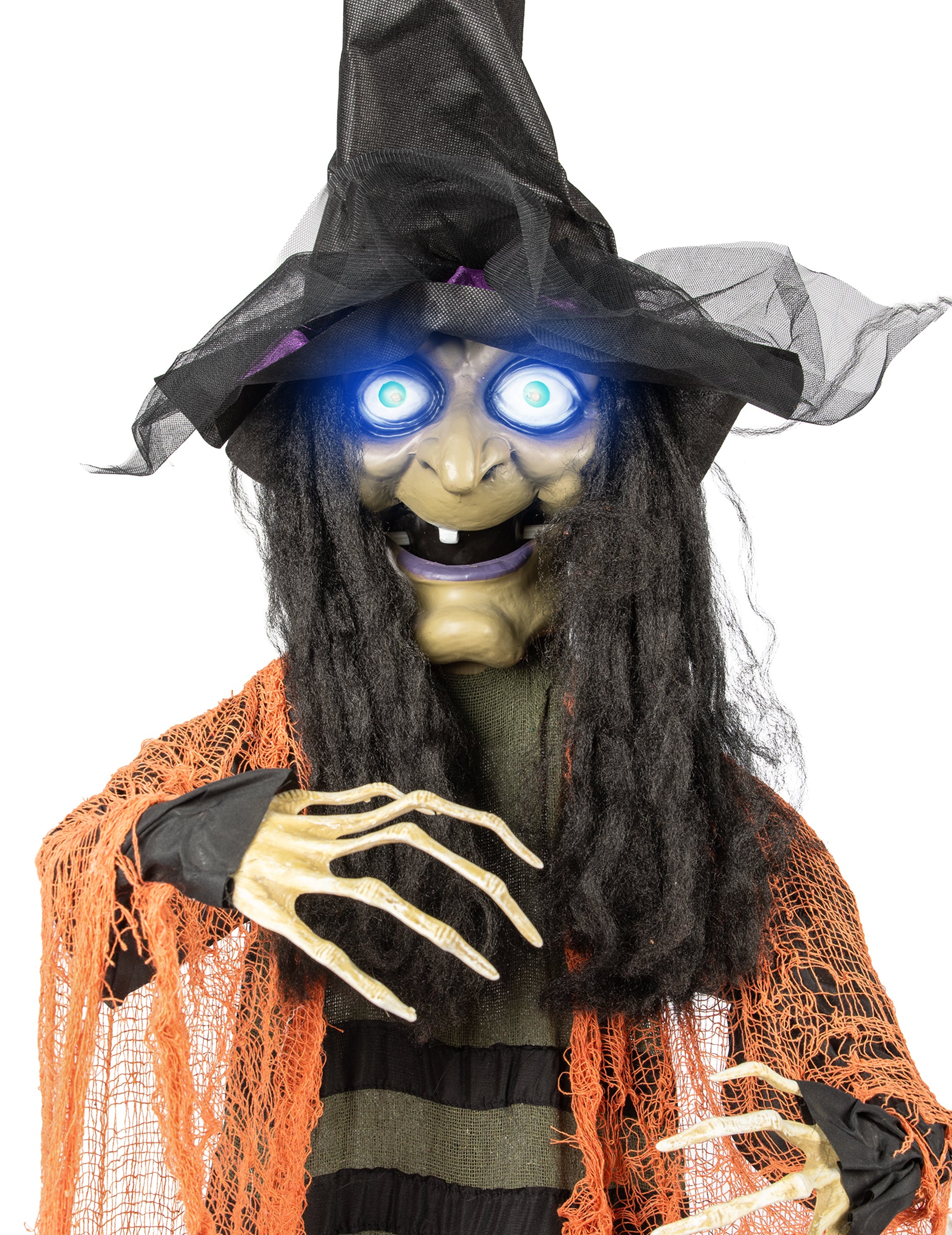 Animovaná, zvuková a světelná závěsná dekorace čarodějnice 183 cm
