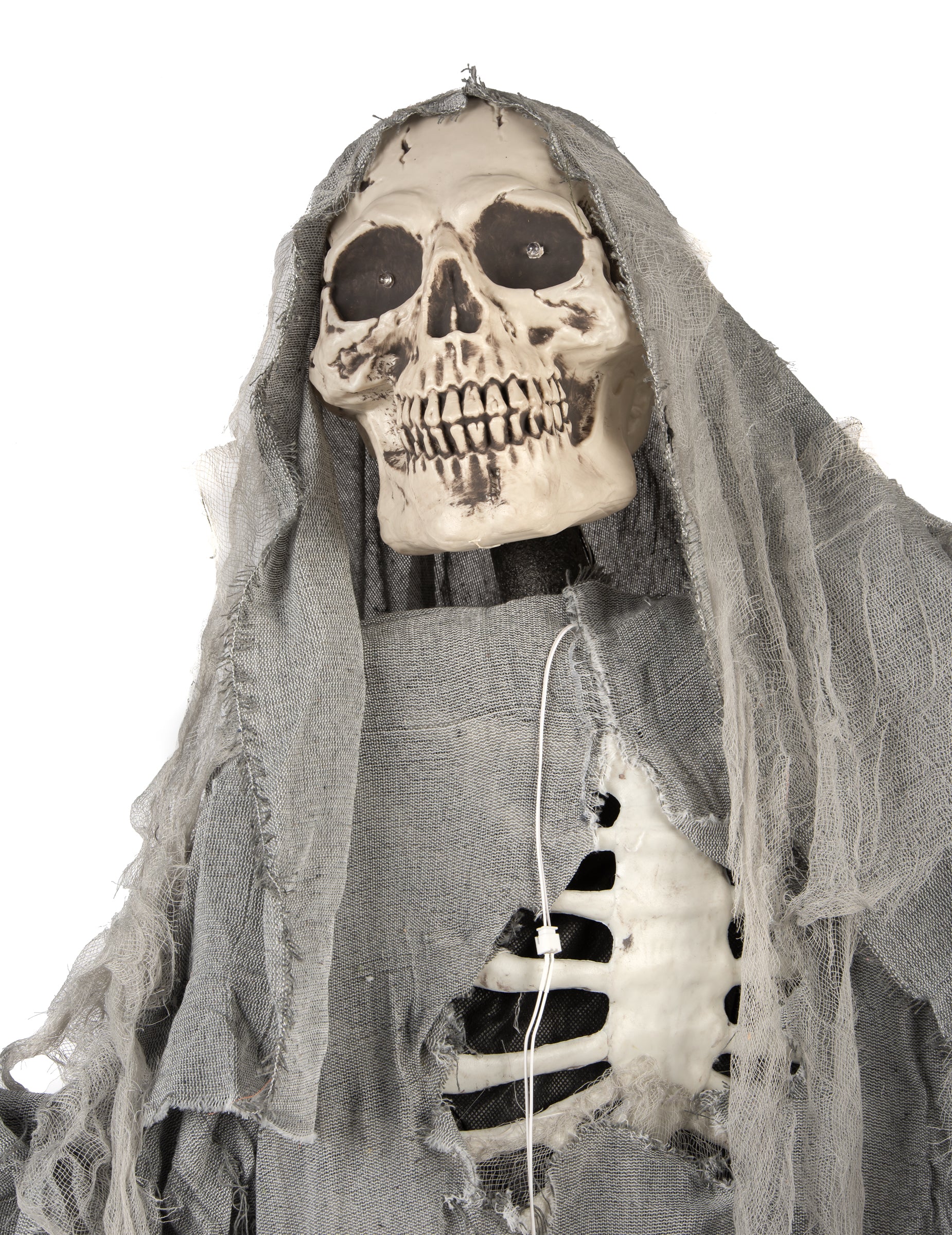 Se svými 183 cm Strašidelný plovoucí žněc vztyčeně přitahuje pozornost. Zahalený do potrhaných šedých závojů a s impozantní černou kosou v ruce vytváří iluzi ducha vznášejícího se ve vzduchu, připraveného udeřit. Při sebemenším zvuku se jeho hlava probudí, rozsvítí se mu červené oči a vydá zlověstný výkřik. Aktivuje se spínačem, který jej jednoduchým cvaknutím přepne do pohotovostního režimu. Dekorace funguje na 3 AA baterie (součástí balení). Umístěte ji do chodby nebo tmavého rohu a vytvořte úchvatnou atmosféru pokaždé, když kolem někdo projde. (3 AA baterie jsou součástí balení)