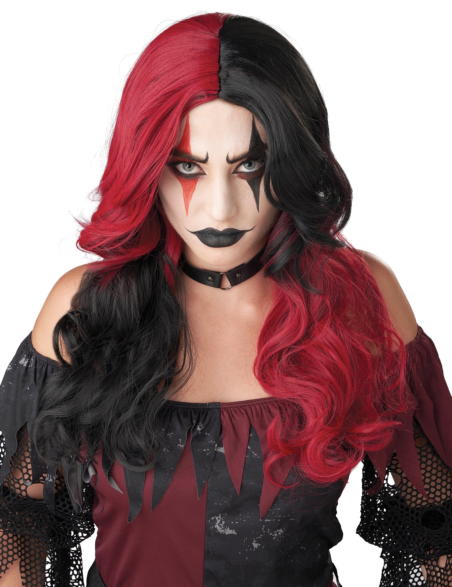 Cette perruque bicolore noire et rouge est l’accessoire idéal pour incarner un joker maléfique lors d’une soirée déguisée, d’Halloween ou d’un cosplay. Ses longues mèches ondulées, coupées en deux couleurs contrastées, apportent une touche mystérieuse à votre déguisement. Fabriquée en fibres synthétiques, elle offre un rendu réaliste. Parfaite pour compléter un déguisement de clown maléfique, de joker démoniaque ou d’arlequine diabolique, cette perruque fera sensation et ajoutera une dimension intense et effrayante à votre costume !