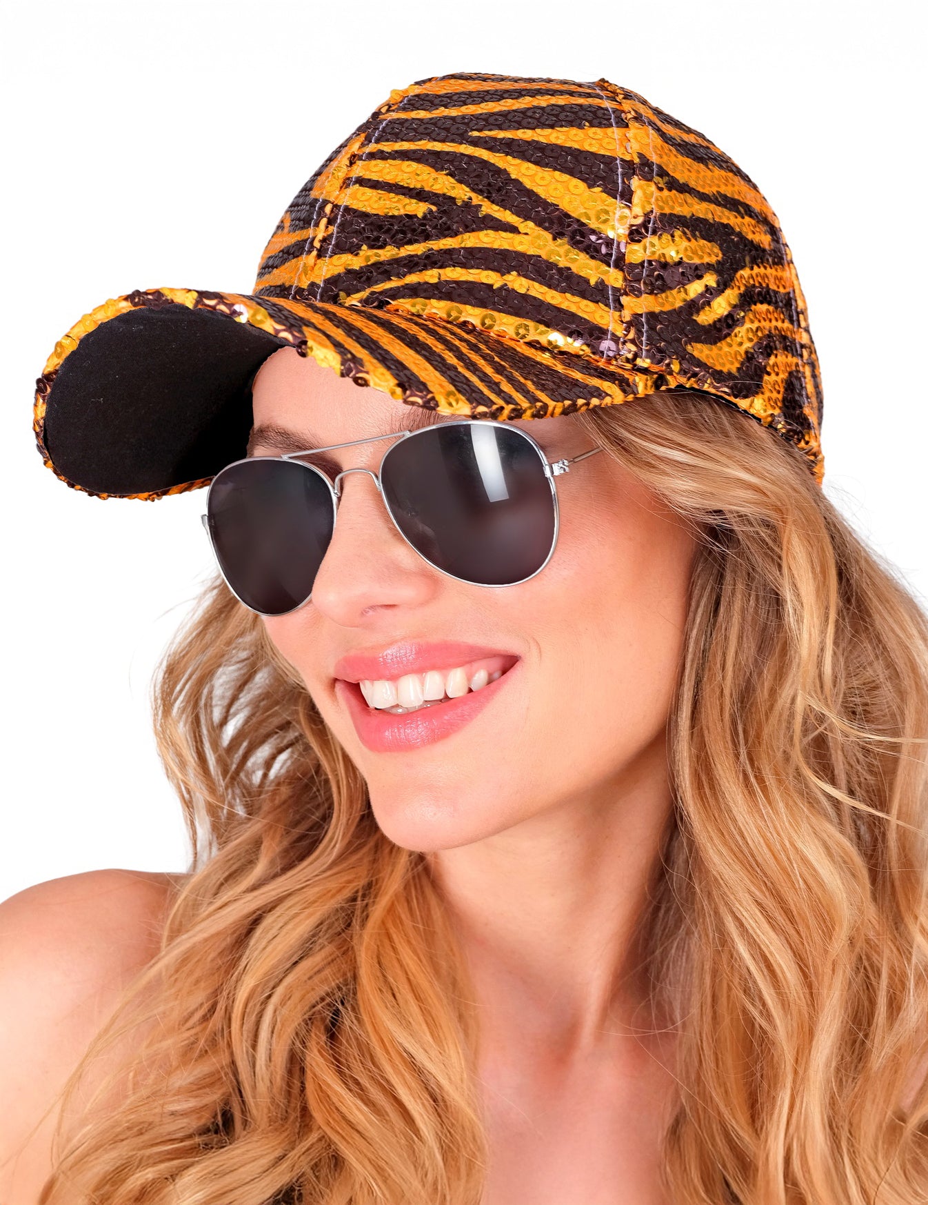 Udělejte si dojem s touto zlatočernou flitrovanou čepicí s tygřím potiskem. Její třpytivá látka je lehká a pohodlná na nošení a je pokrytá světelnými flitry, které vytvářejí hru odlesků. Tygří potisk, který kombinuje eleganci a divokého ducha, dodává outfitu nádech originality a humoru. Zaoblený kšilt doplňuje celek tím, že nabízí pohodlí a praktičnost. Díky zadnímu nastavení se snadno přizpůsobí všem velikostem pro optimální padnutí. Tato čepice je ideální na kostýmní večírek, festival nebo slavnostní událost a je ideální pro zářivý a oslnivý vzhled.