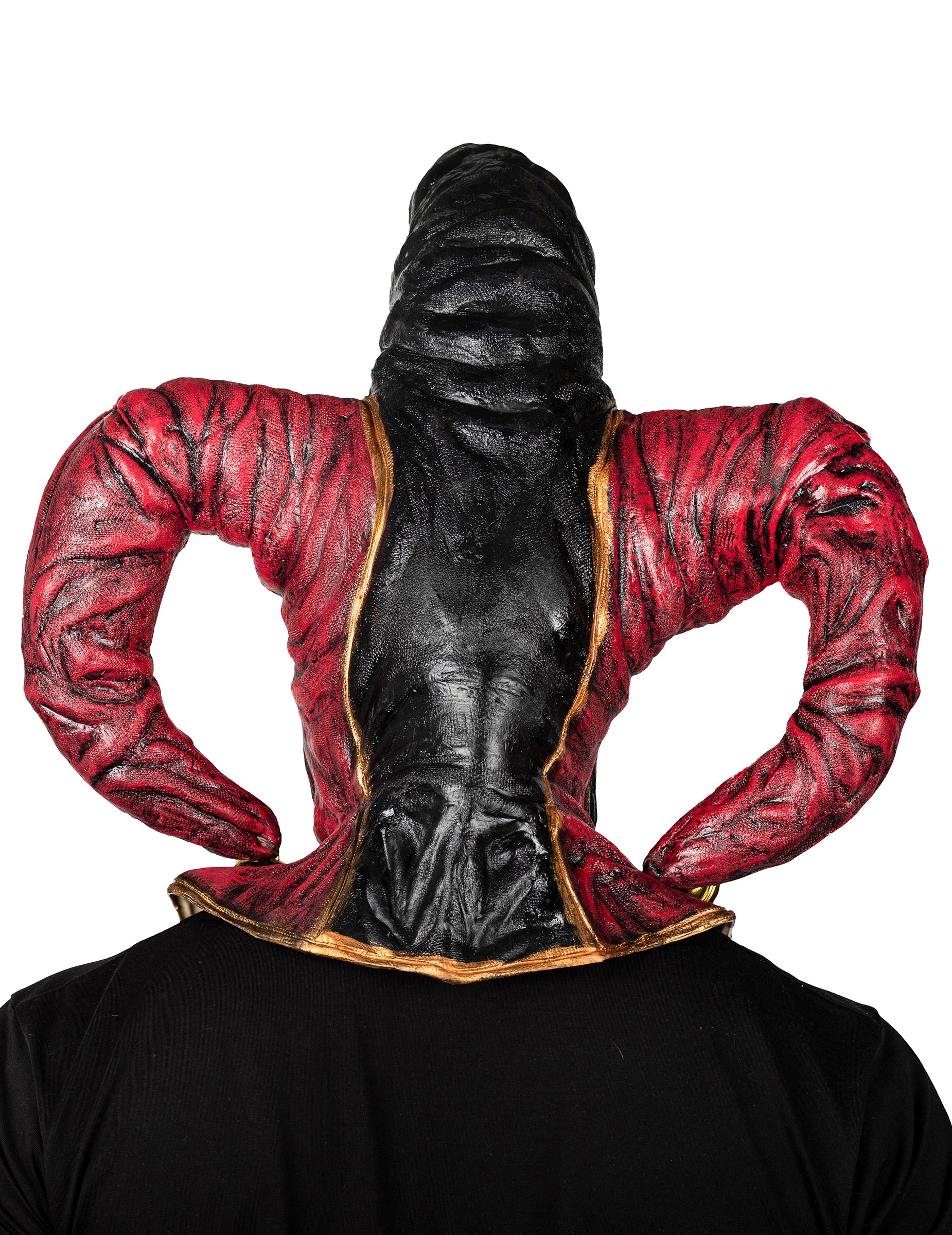 Navrženo tak, aby zcela zakrylo hlavu, nabízí ultrarealistický efekt díky svým detailům a pečlivé povrchové úpravě. Zlaté zvonky dodávají strašidelný nádech a posilují její děsivý vzhled.
