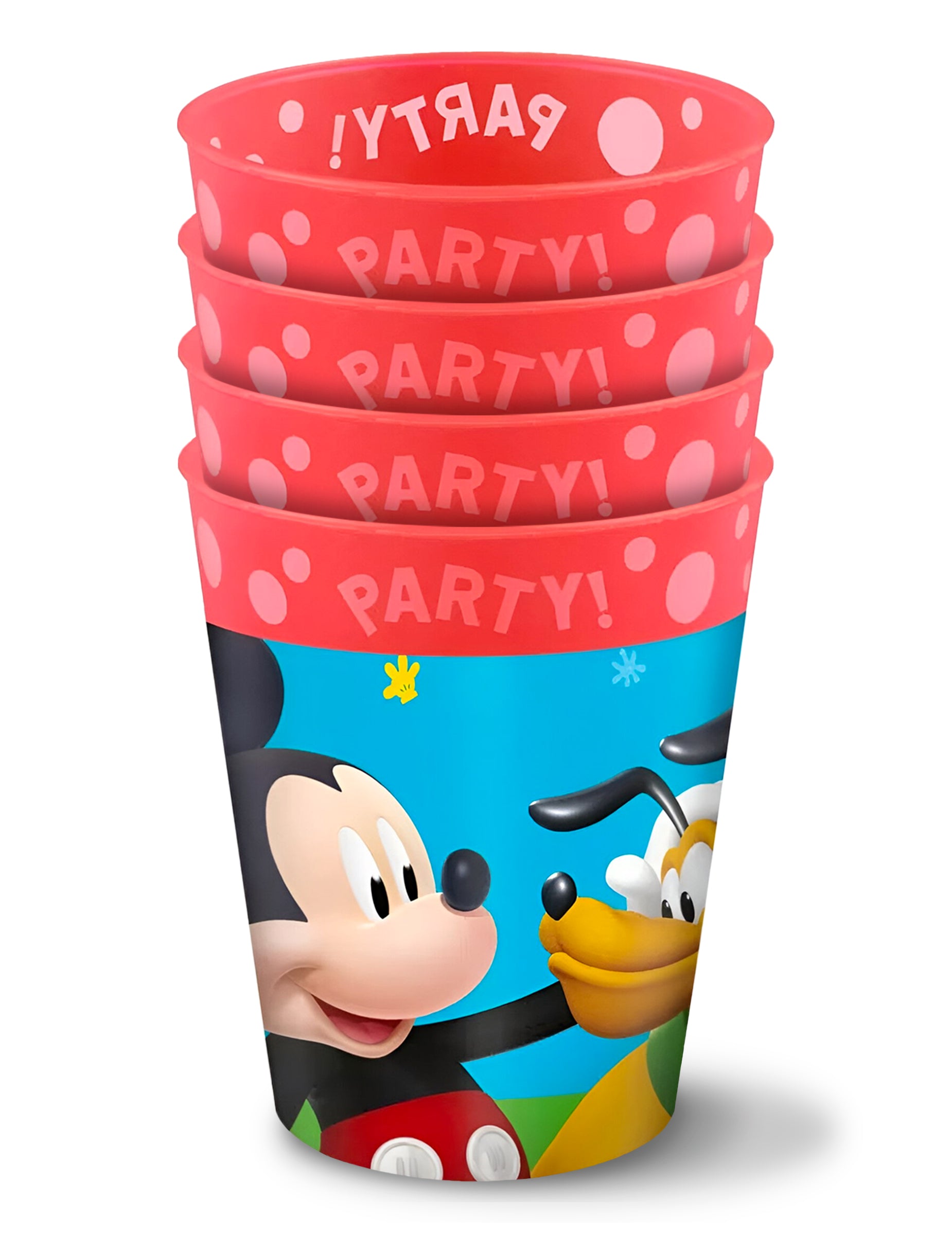 Tato sada 4 oficiálně licencovaných opakovaně použitelných kelímků s Mickey Mousem o objemu 250 ml kombinuje zářivě červenou a veselou modrou barvu a vytváří tak veselou atmosféru. Na ní jsou vyobrazeni Mickey Mouse a Pluto, obklopeni slavnostními vzory a nápisem „PARTY!“ pro ještě veselejší nádech. Tyto kelímky jsou vyrobeny z odolného plastu, jsou omyvatelné a navrženy pro dlouhou životnost. Jsou ideální pro všechny vaše lahodné nápoje: džus, čerstvou vodu nebo horkou čokoládu. Oficiální a veselý doplněk, ideální pro narozeniny s Mickey Mousem, Disney párty nebo svačinu plnou úsměvů!