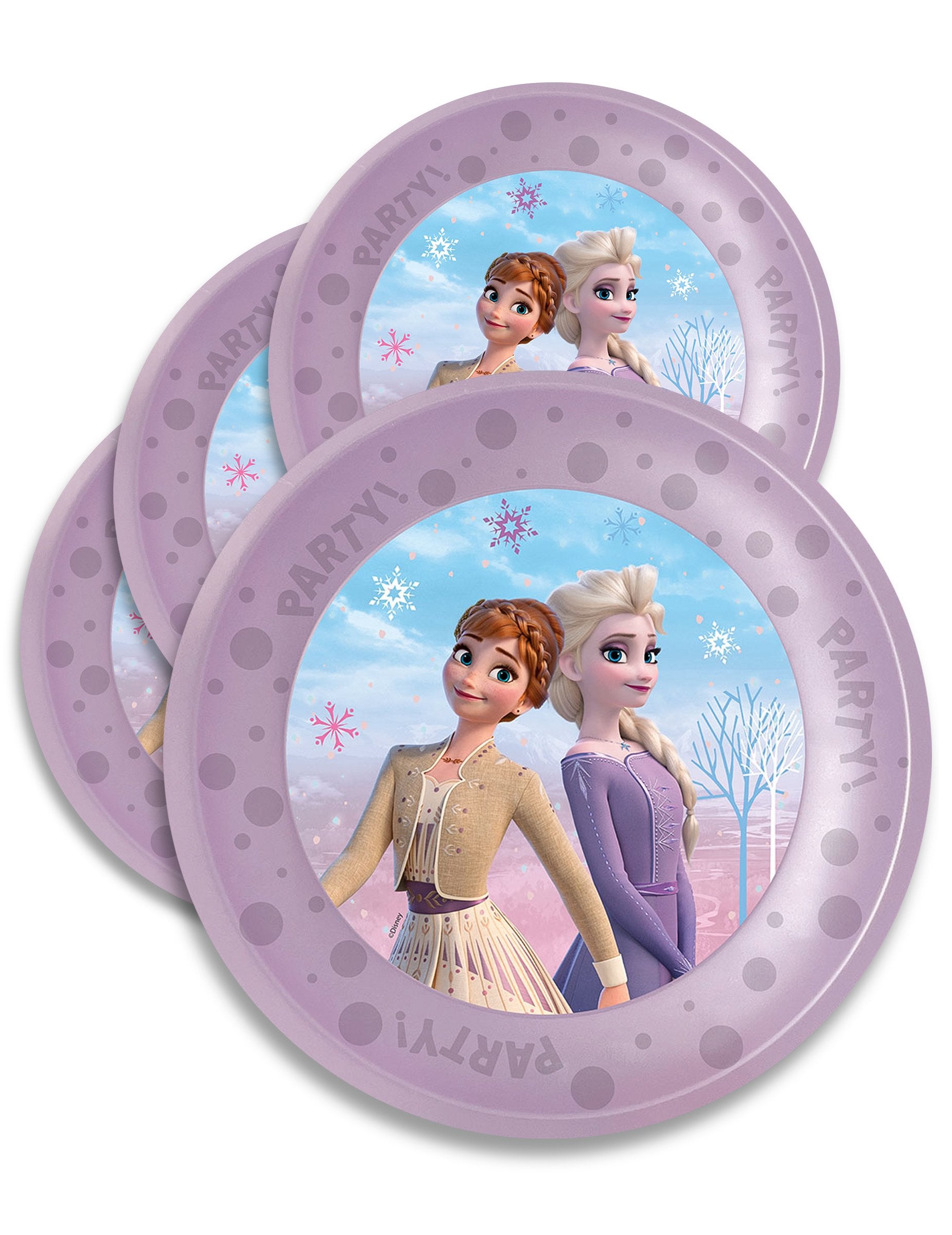 Tato sada 4 opakovaně použitelných talířů Ledové království od 21. cm, Oficiálně licencované, ponoří děti do zamrzlého světa Arendelle. V okouzlujících fialových tónech zobrazují Elsu a Annu obklopené sněhovými vločkami, čímž vznikne stůl hodný těch nejkrásnějších příběhů. Vyrobeny jsou z pevného a odolného plastu, takže se perfektně hodí k mnohostrannému použití, ať už na narozeninovou oslavu, slavnostní jídlo nebo na kousek dortu. Nápis „PARTY!“ po okraji dodává radostný a slavnostní nádech. Oficiální nutnost pro nezapomenutelnou párty s Ledovým královstvím!