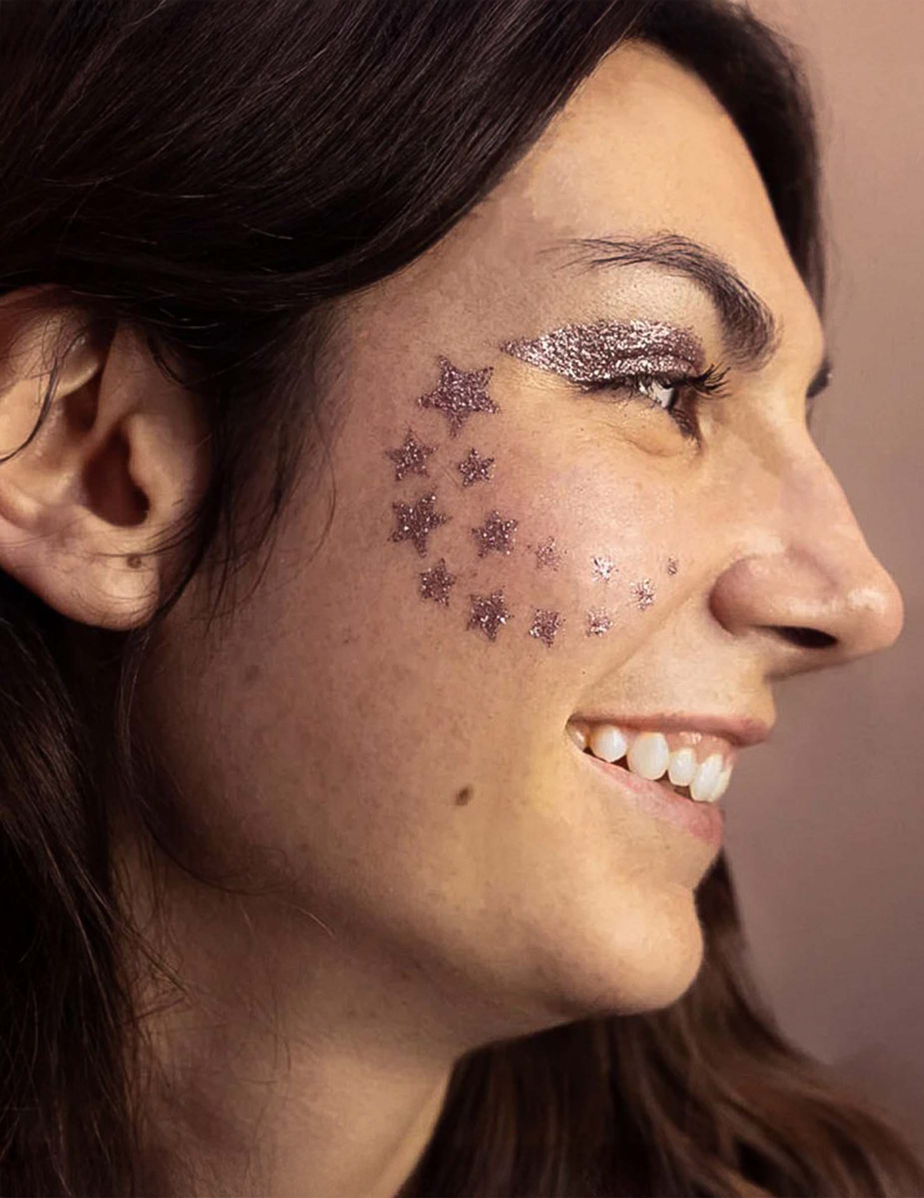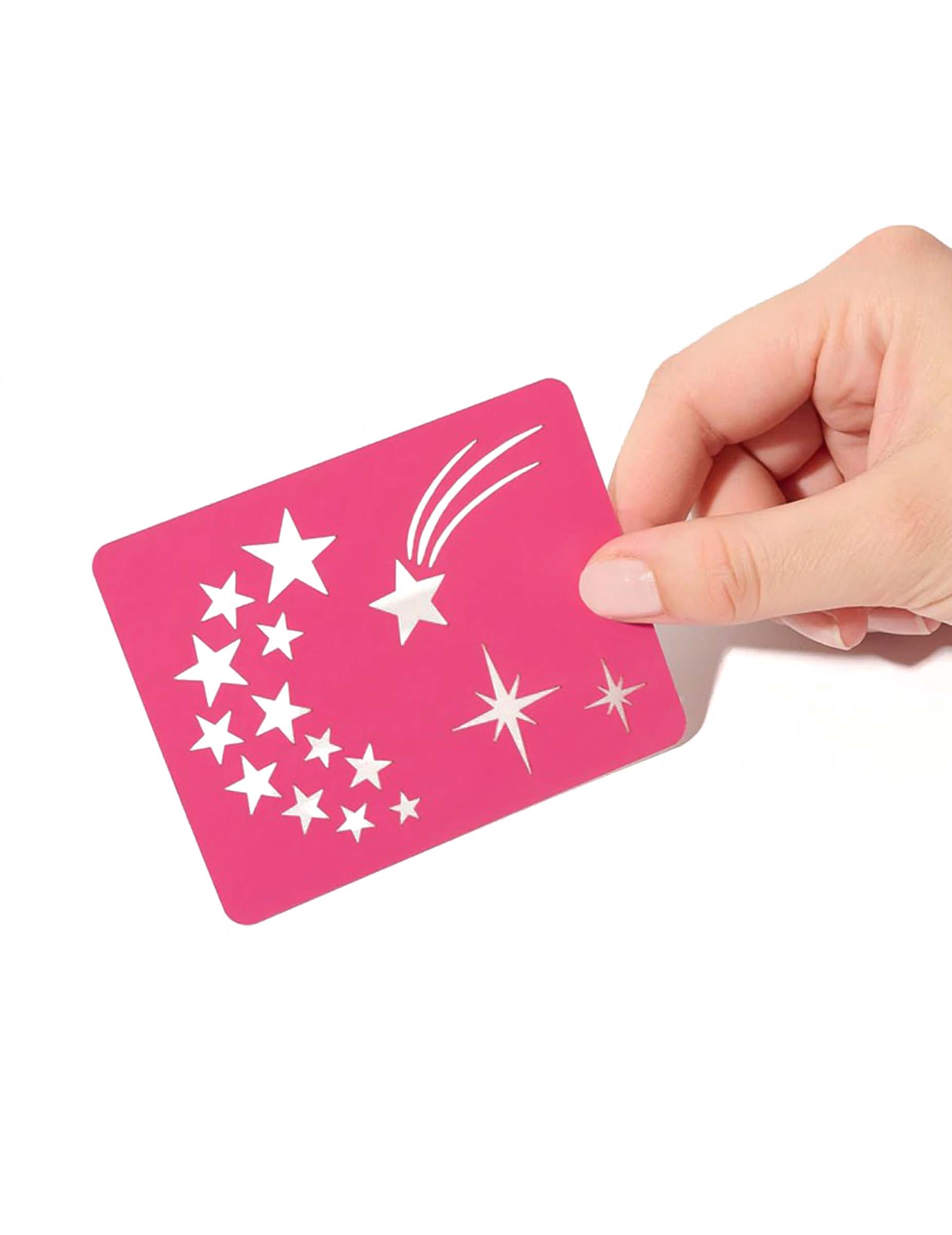 Dodejte svému vzhledu magický a zářivý nádech s touto šablonou na líčení. Umožní vám snadno vytvářet hvězdy různých velikostí, třpytky a padající hvězdu, což je ideální pro magický efekt. Díky svému praktickému formátu nabízí rychlou a přesnou aplikaci na obličej nebo tělo. Tato opakovaně použitelná šablona je ideální pro karneval, kostýmní večírky nebo umělecké líčení a zaručuje pokaždé oslnivý výsledek!