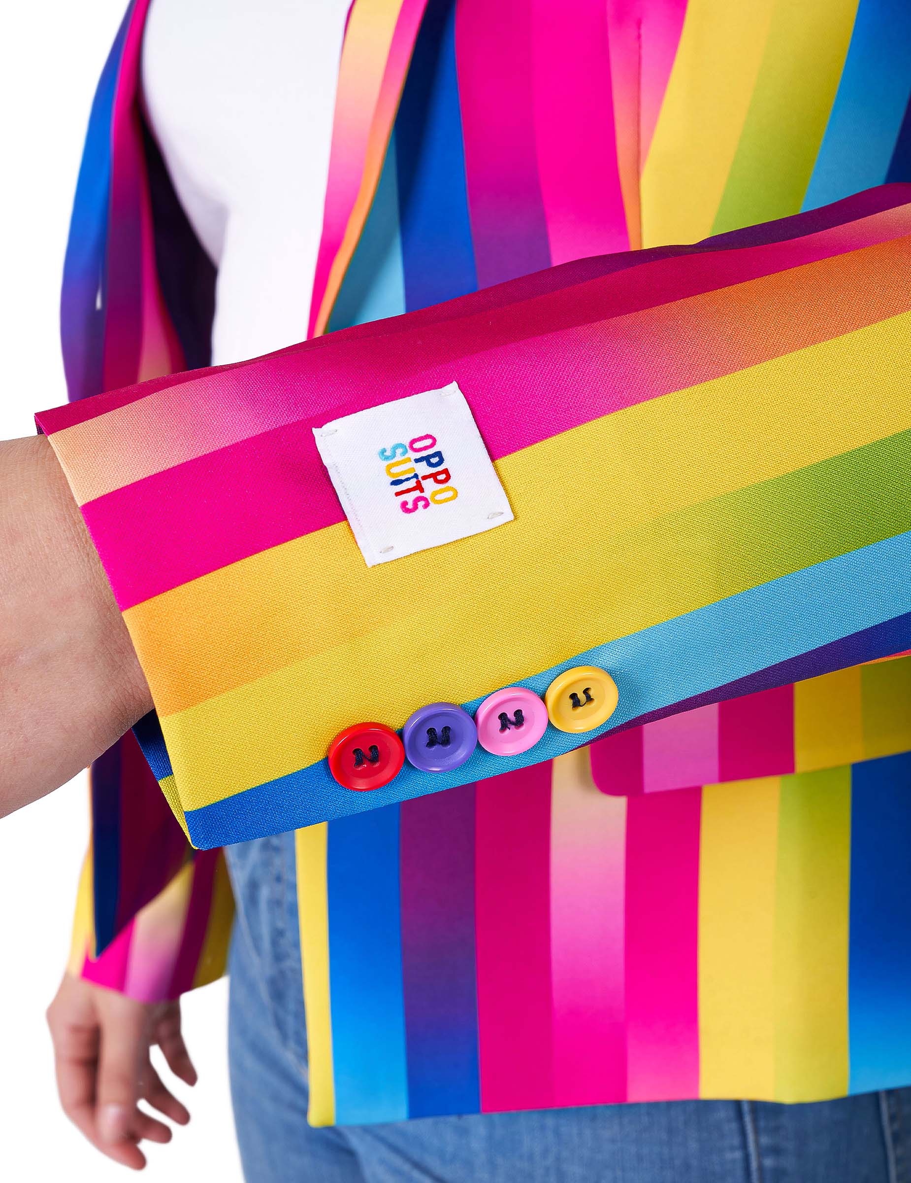 Toto dámské sako s duhovým vzorem od Suitmeister je perfektním kouskem pro jedinečný a zářivý vzhled. Díky svým zářivým vícebarevným pruhům je skutečným poutníkem a dodá vašemu outfitu sváteční energii. Jeho úzký střih a zapínání na knoflíky zajišťují stylovou siluetu. Ideální na tematickou párty, slavnostní událost nebo prostě pro každodenní předvedení vašeho odvážného stylu!
