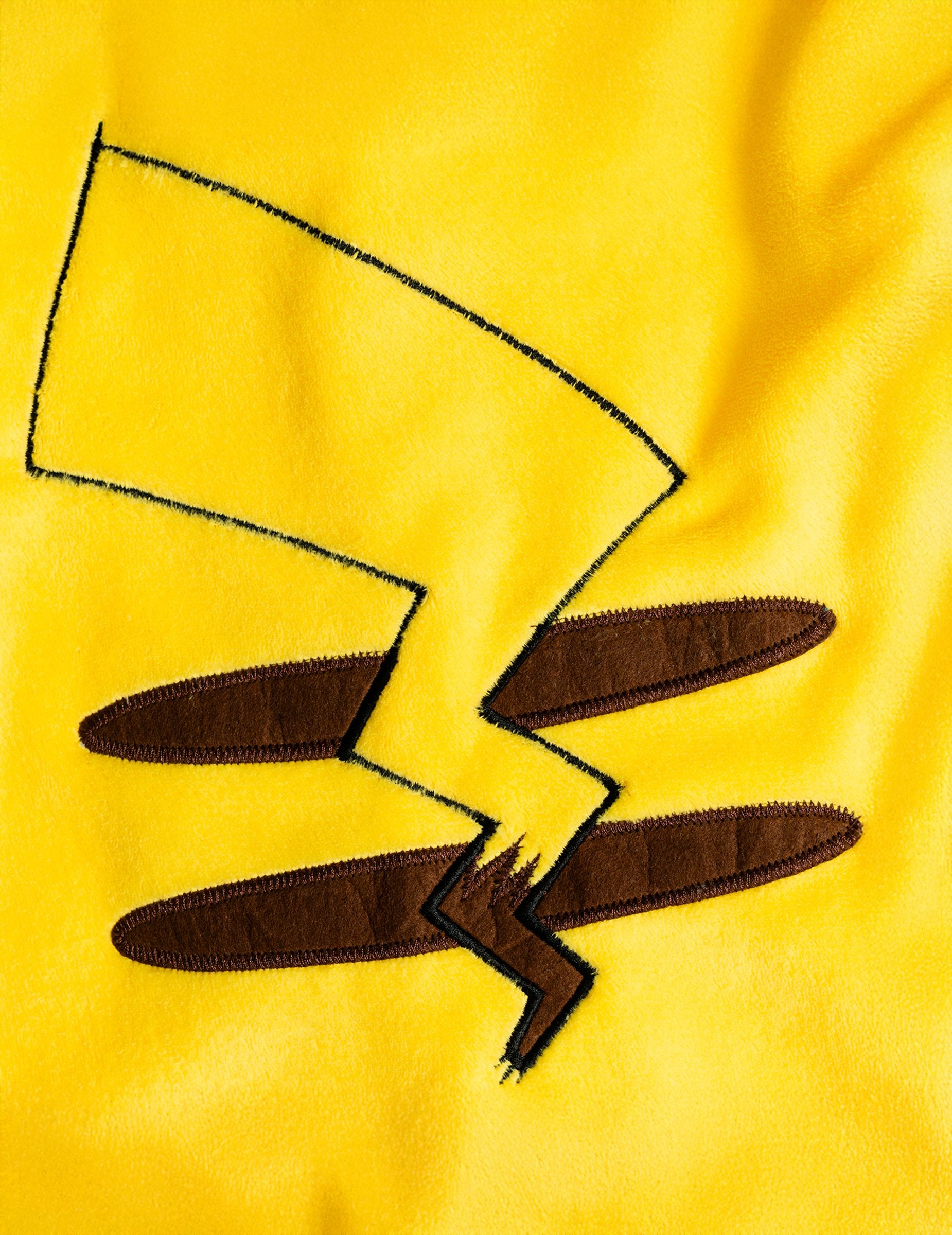 Tento dětský kostým Pokémona Pikachua je žlutý overal s kapucí, který se perfektně hodí k převlékání za nejslavnějšího Pokémona. Kapuce zdobí Pikachuův obličej s velkými černými ušima a potištěnými červenými tvářemi a na zadní straně je připevněn ocas ve tvaru blesku, který celkový vzhled dotváří. Tento pohodlný a snadno se obléká, tento kostým je ideální na narozeniny, karneval nebo na slavnostní převlékání pro začínající trenéry Pokémonů.