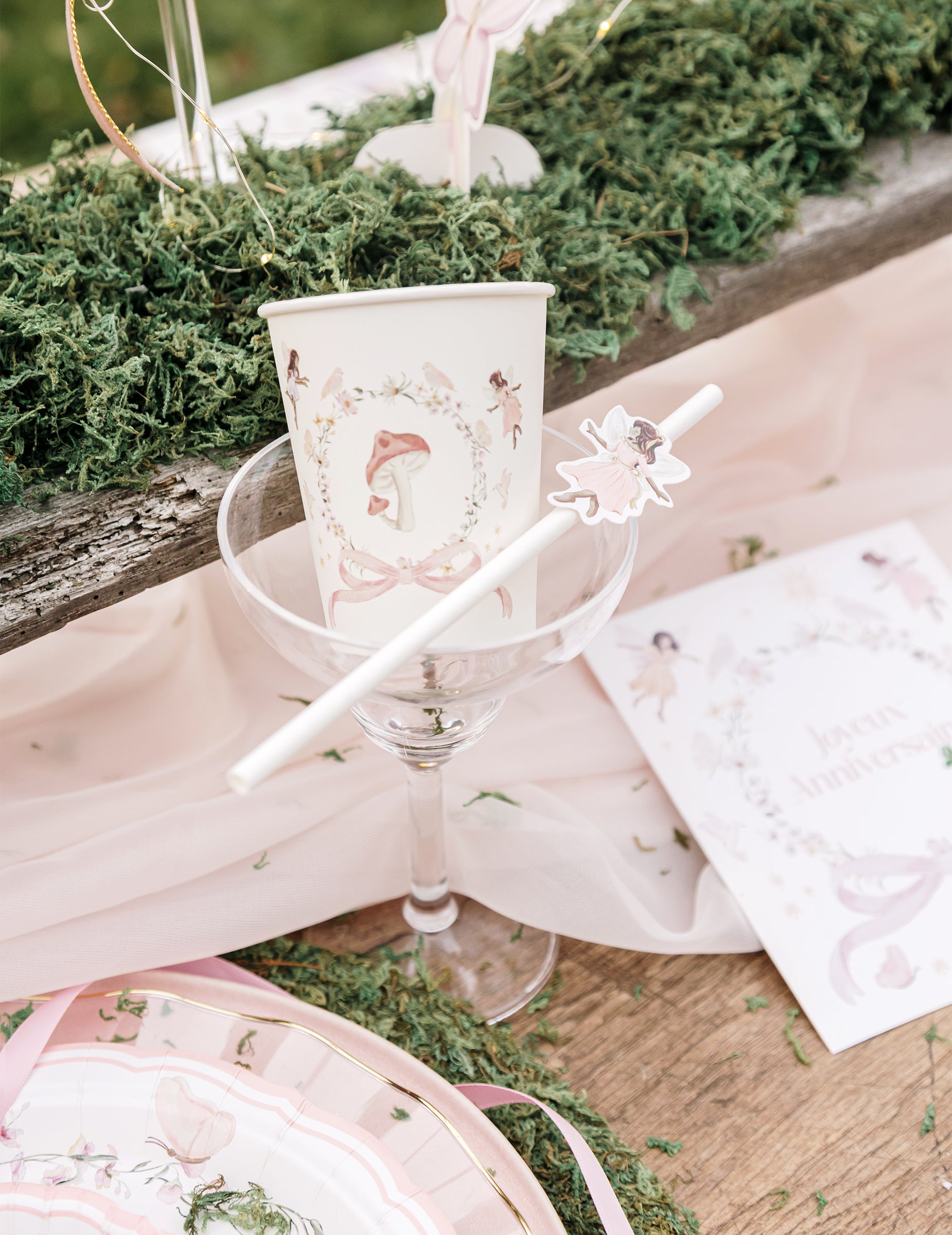 Vylepšete své občerstvení touto sadou 12 papírových brček v jemných odstínech bílé a pastelově růžové. Zdobeno půvabnými ilustracemi víly, květiny a pohádkové domy, přinášejí poznámku pohádkový s každou sklenkou. Je to vysněný doplněk, který ohromí vaše hosty během speciální události.