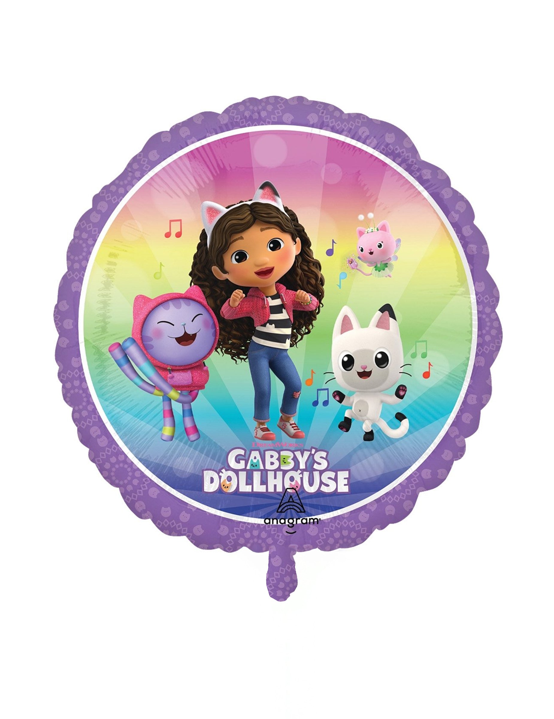 Dodajte své párty kouzelný nádech s tímto malým fóliovým balónkem Gabby and the Magic House. Měří přibližně 22... cm a zobrazuje Gabby obklopenou svými rozkošnými kočkami, na duhovém pozadí s lesklým fialovým okrajem. Tento balónek je příliš malý na to, aby se vznášel s héliem: je ideální k vystavení na špejli nebo jako dekorace na stůl či zeď. Špejle není součástí balení. Ideální pro dětské narozeniny nebo párty v Gabby's Dollhouse!