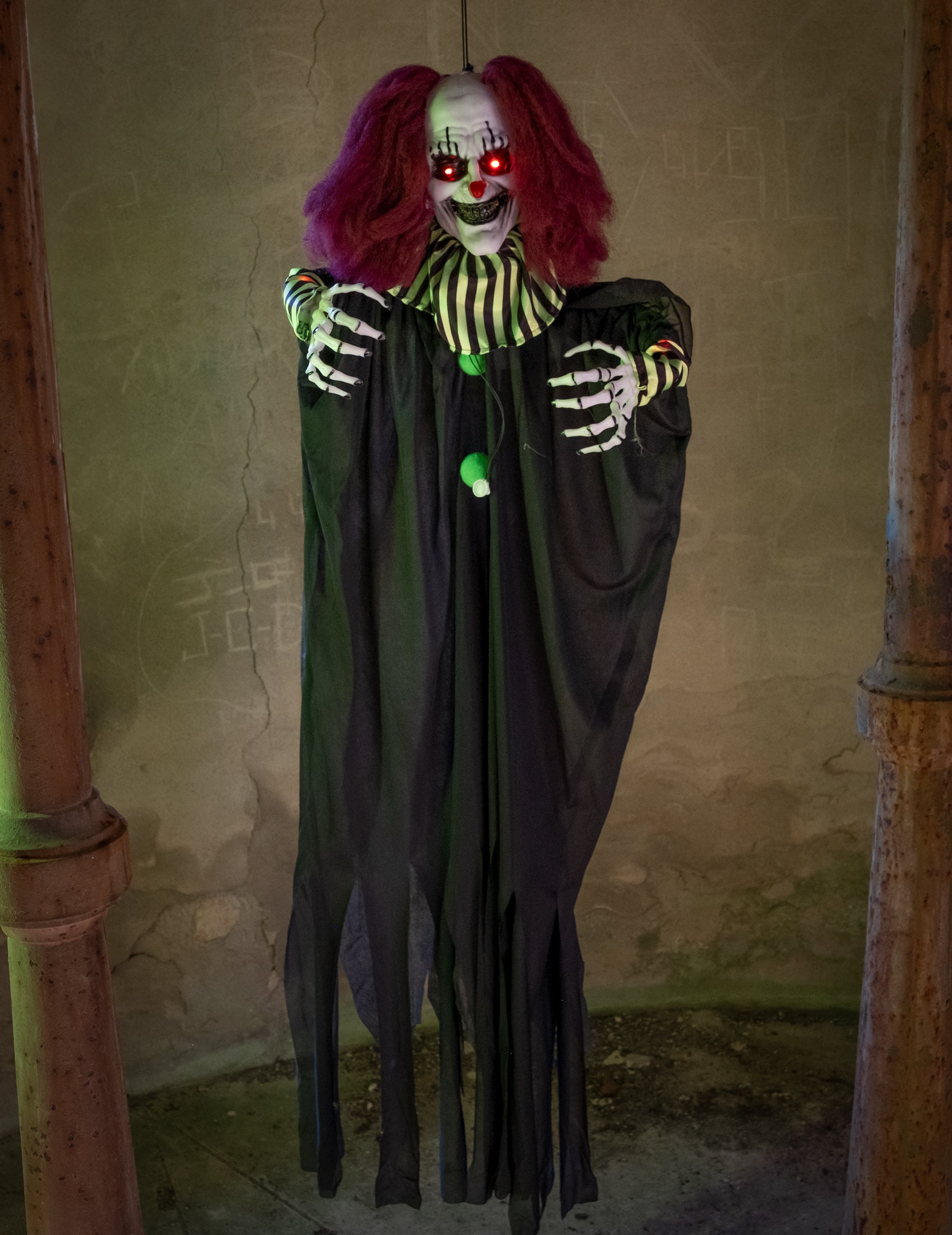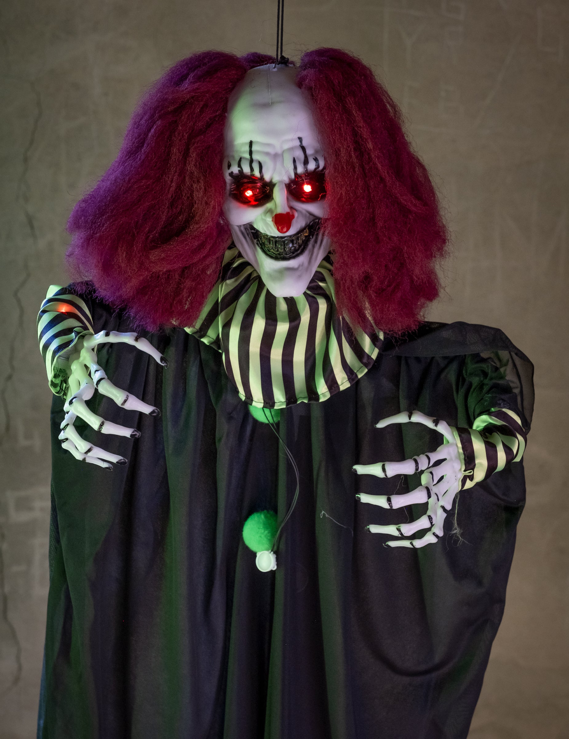 Závěsná animovaná dekorace Děsivý klaun 130 cm