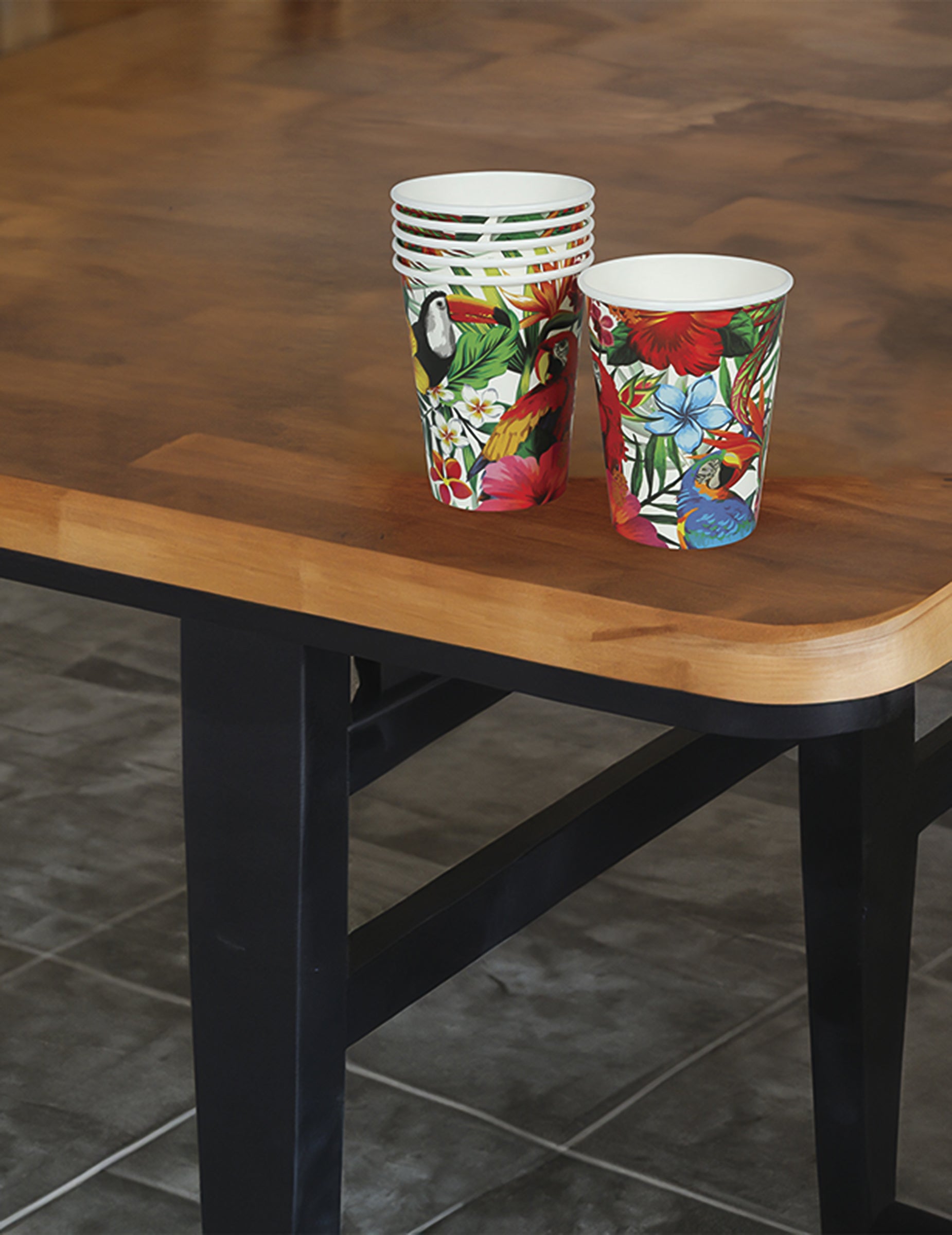 Tato sada 6 kartonových kelímků s motivem tropických ptáků má objem 240 ml a délku 9... cm Vysoký, vnese barvu do všech vašich slavností. Díky svým okázalým vzorům papoušků, tukanů a exotických květin jsou tyto praktické hrnky ideální pro servírování studených nápojů a zároveň vytvářejí teplou a exotickou atmosféru. Ideální pro slunečný piknik, párty s džunglí nebo tropický večer.