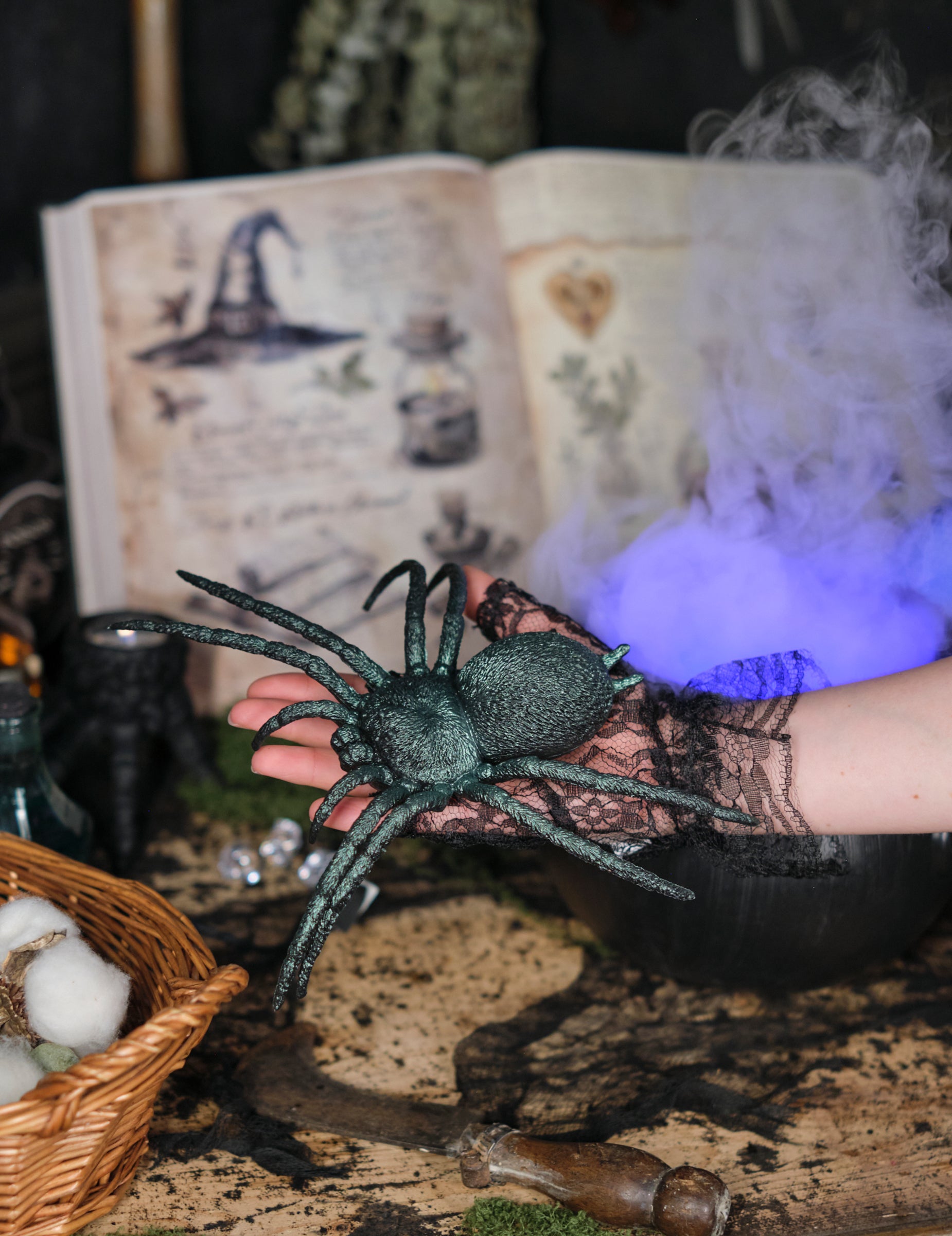 Tento duhově zelený plastový pavouk 23 cm je ideální pro přidání strašidelného a vizuálně zajímavého prvku do vaší halloweenské výzdoby. Rozměry 23 x 17,5 x 3,8 cm, Lze jej umístit na stůl, zeď nebo do srdce dekorativního plátna. Jeho texturovaný povrch a kovově zelené odlesky mu dodávají vzhled tajemný i hrozivý. Je ideální pro dotvoření čarodějnického světa, hřbitova nebo doupěte obludného hmyzu, přitahuje pohled a zároveň zasévá pochybnosti. Jednoduchý dekorativní prvek, ale impozantně efektivní, který ponoří vaši scénu do pavoučí atmosféry.