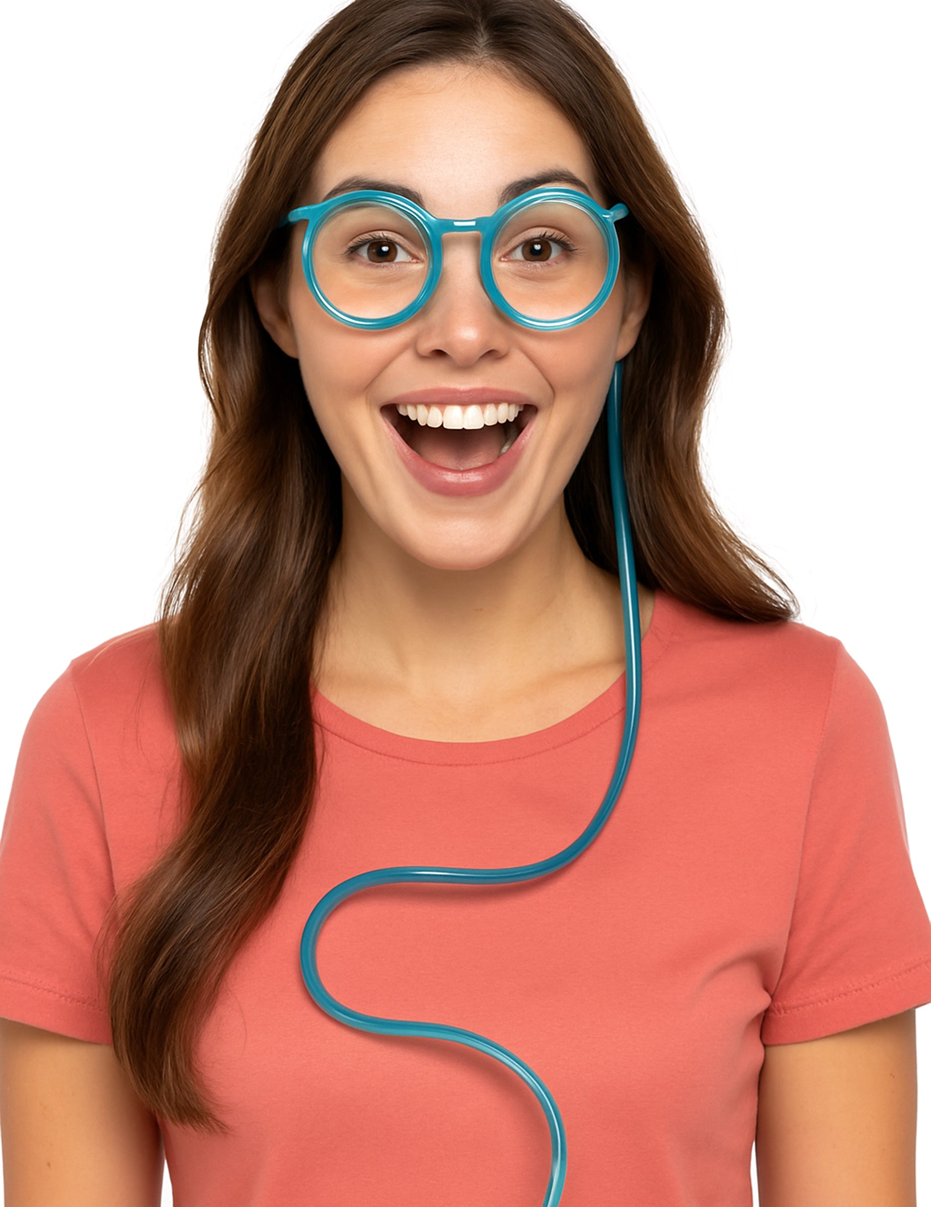 The brýle sestávají z kulatého rámu spojeného s integrovaným brčkem, které tvoří viditelný obvod kolem čoček před dosažením úst. Průchod nápoje trubicí vytváří během použití okamžitý vizuální efekt. Přicházejí v několika náhodných barvách, které večeru přinášejí nádech překvapení a rozmanitosti. Jejich formát umožňuje jednoduché použití po dobu trvání animace.